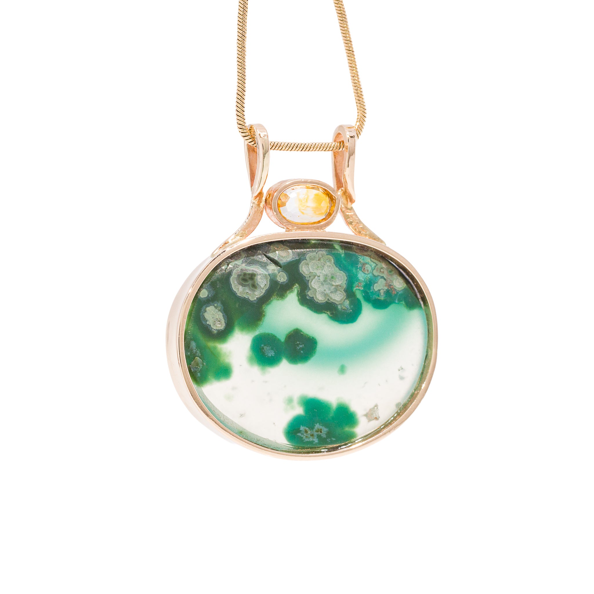 Gem Silica & Yellow Sapphire 14k Handcrafted Gemstone Pendant