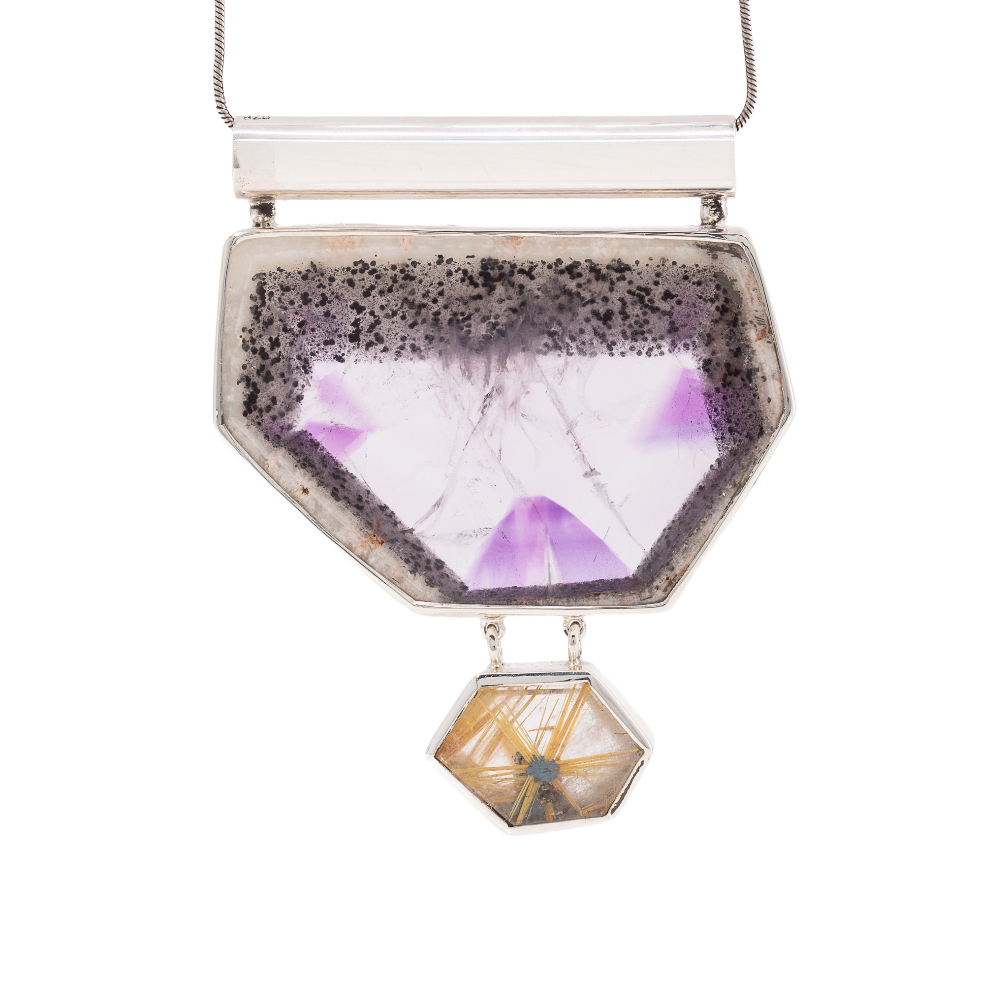 Phantom Amethyst & Star Rutile Sterling Silver Handcrafted Gemstone Pendant