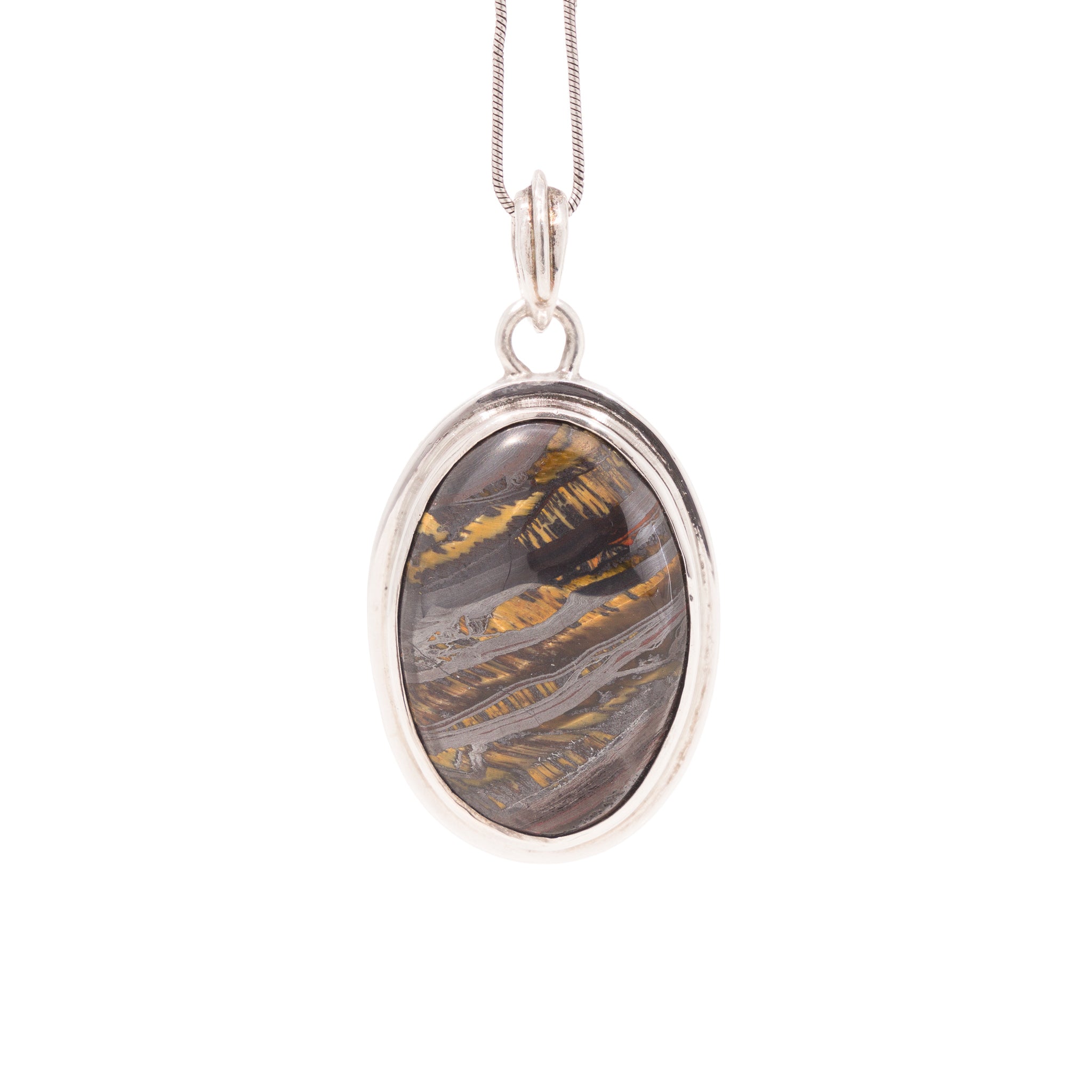 Tiger Iron 36.86 Carat Sterling Silver Handcrafted Gemstone Pendant