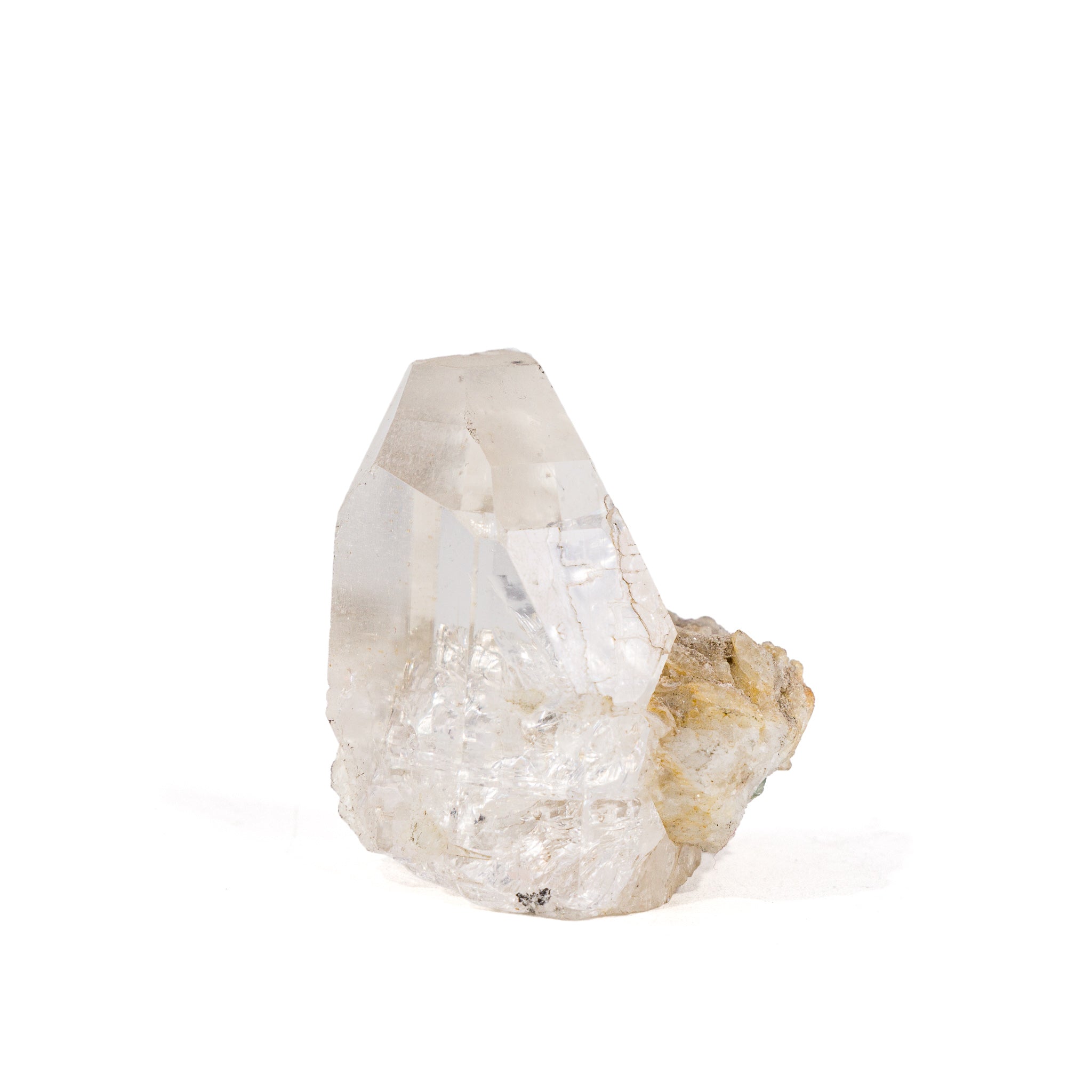 This natural topaz crystal from Shigar, Pakistan, exhibits exceptional clarity and luminosity, with subtle golden undertones and a well-defined termination. Its pristine form and natural matrix base speak to the high-quality deposits found in this renowned region. A beautiful example of nature’s precision, this specimen radiates both elegance and energetic purity, making it a prized addition for collectors and crystal healers alike.