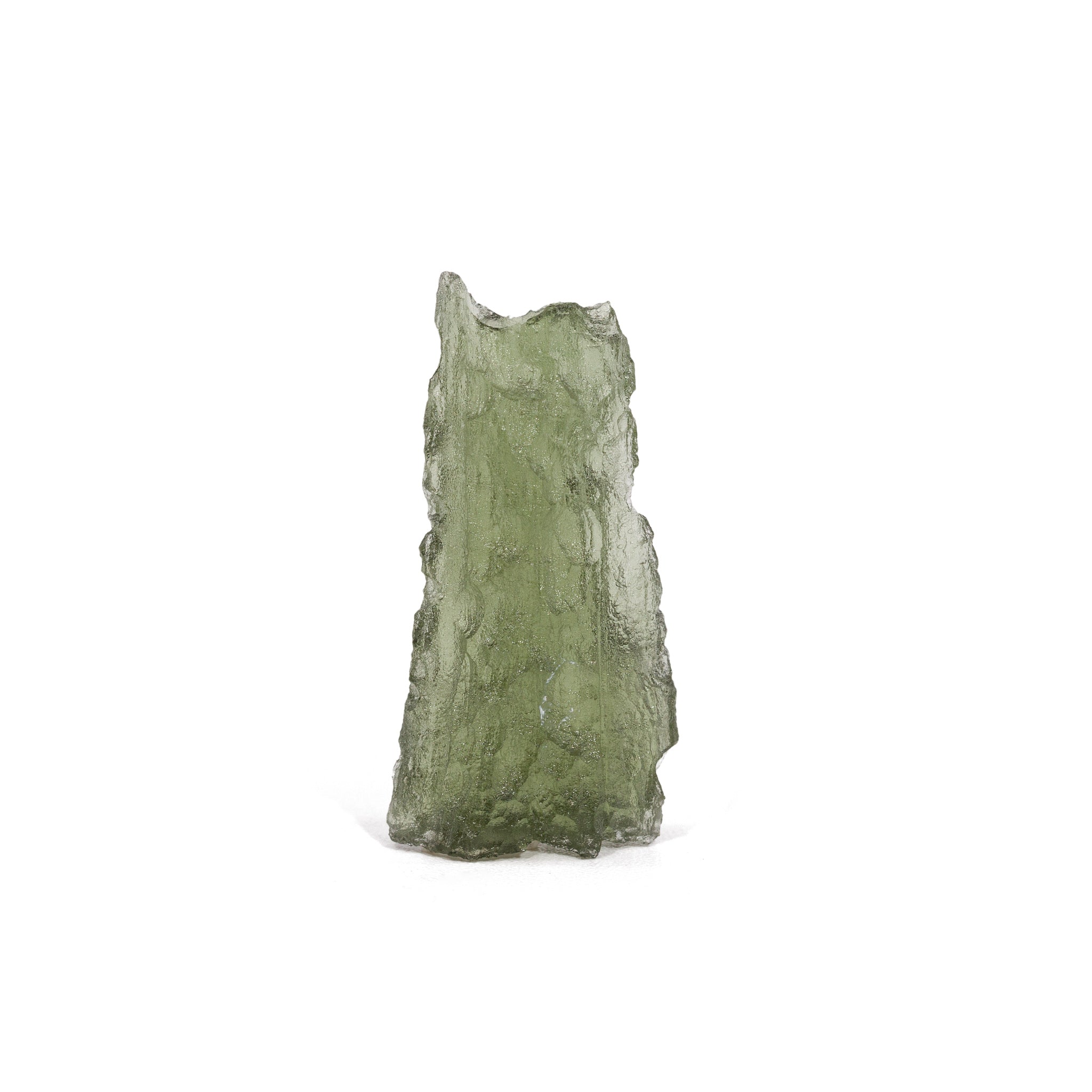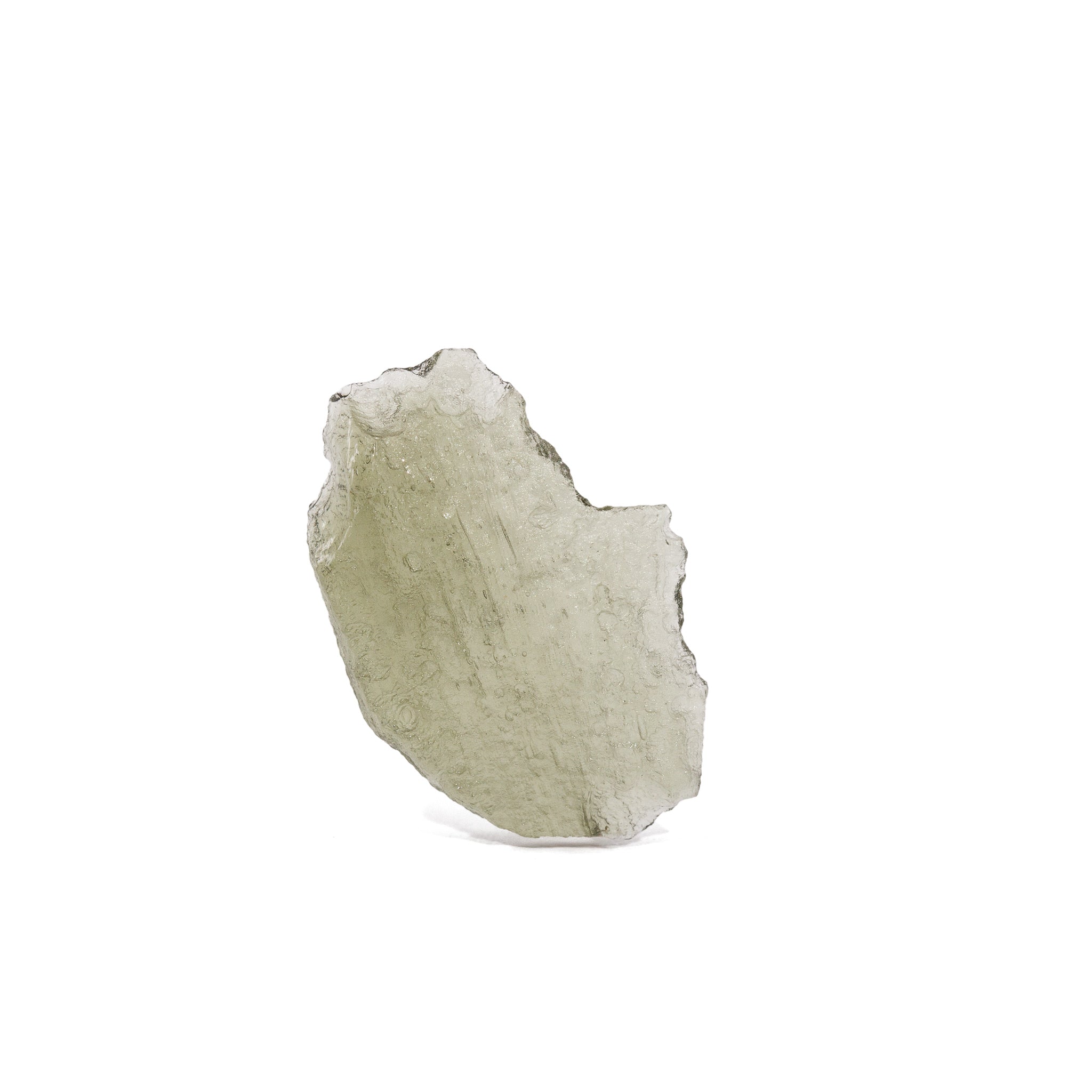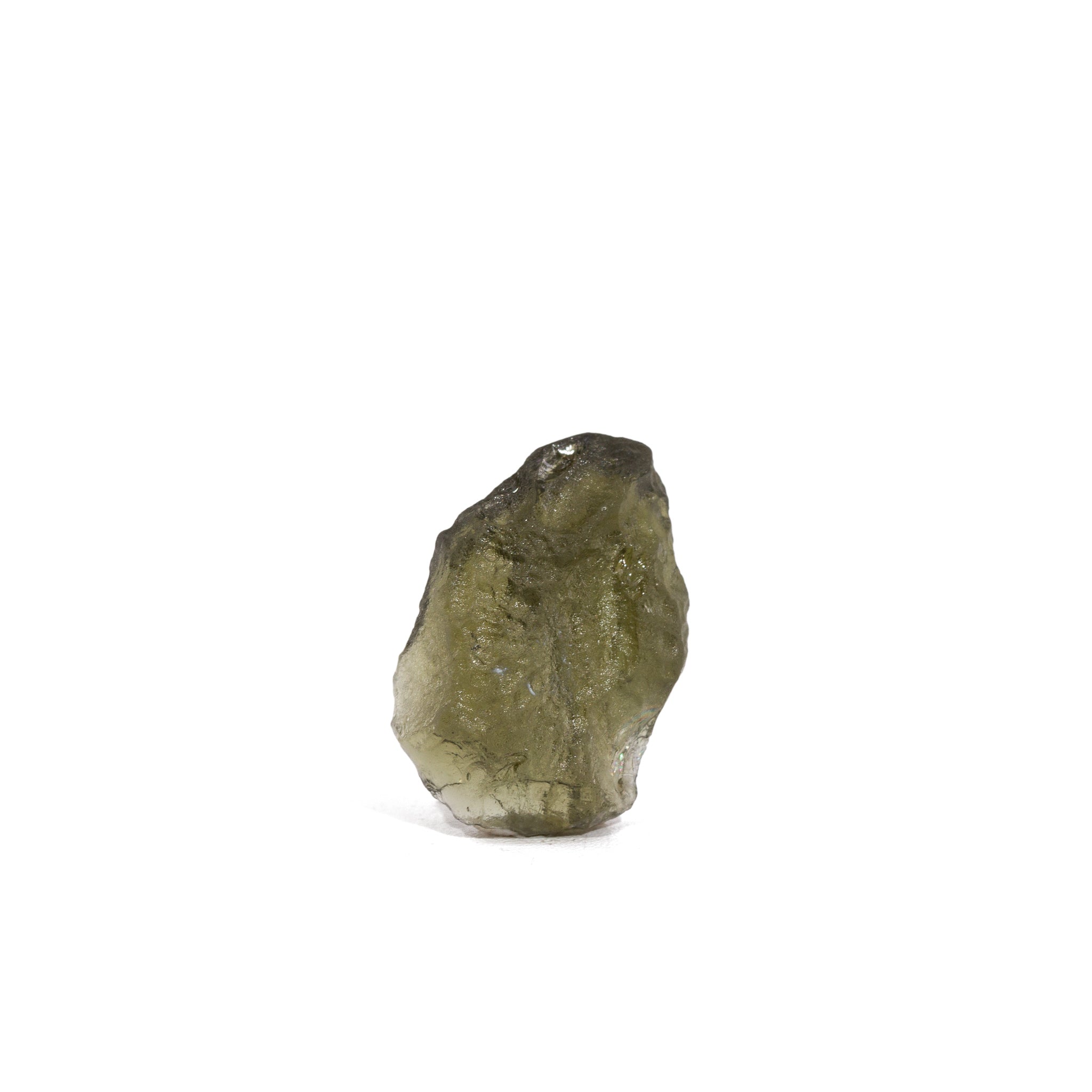 Moldavite is a fragile tektite — handle gently and avoid dropping to preserve edges and natural surfaces.