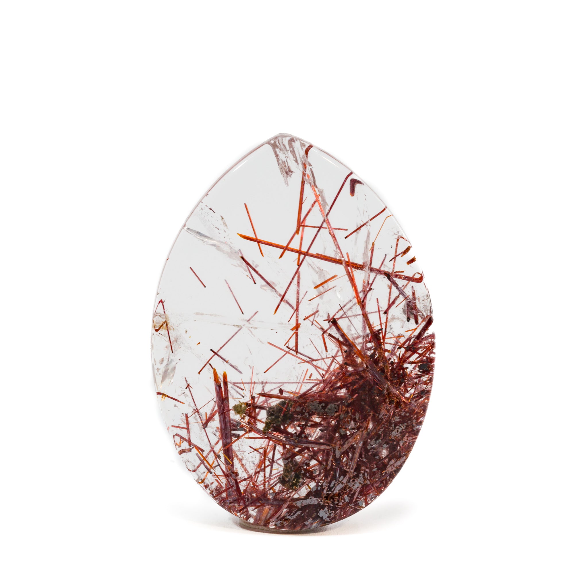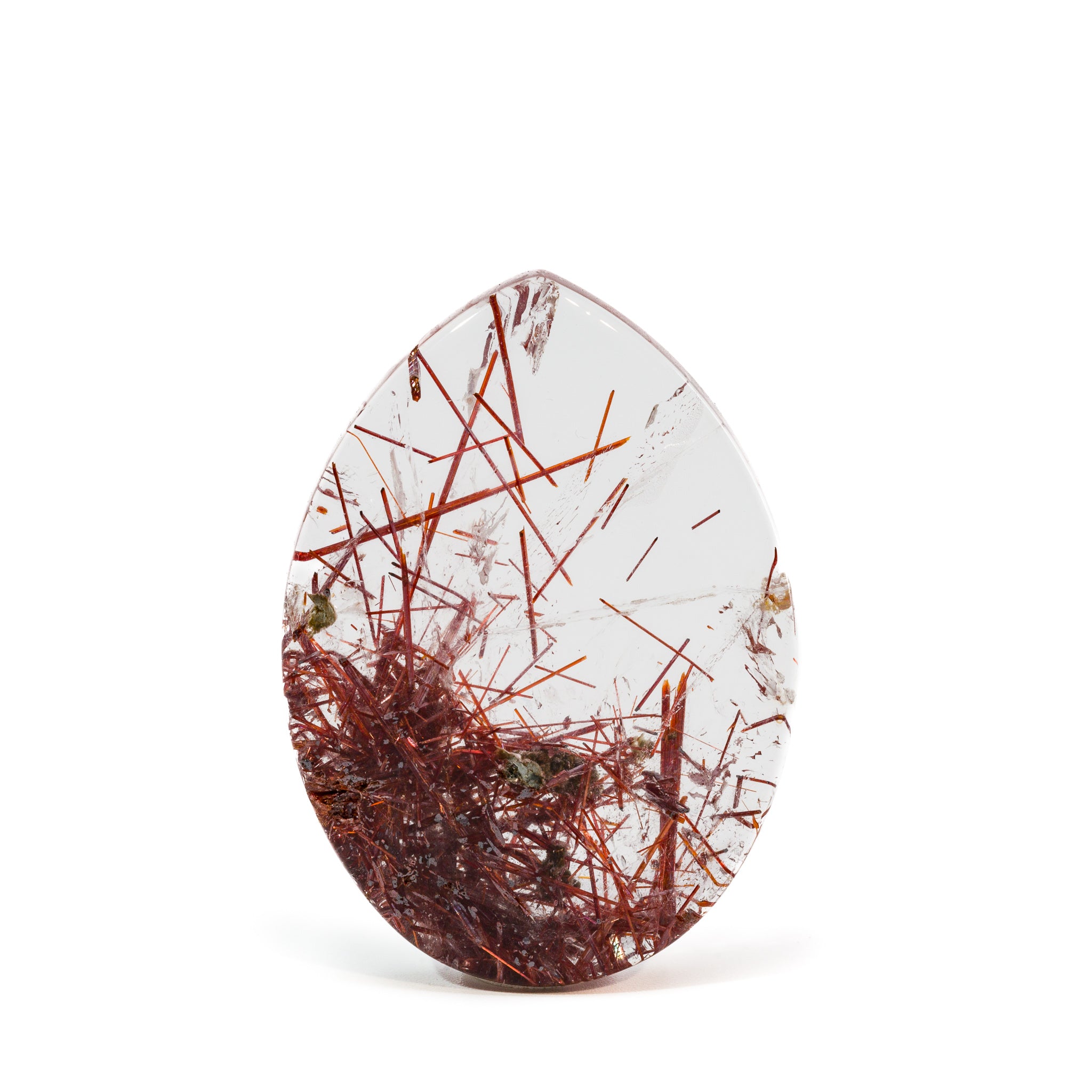 Red Rutile in Quartz 48.7mm 95.5 Carat Polished Crystal Cabochon