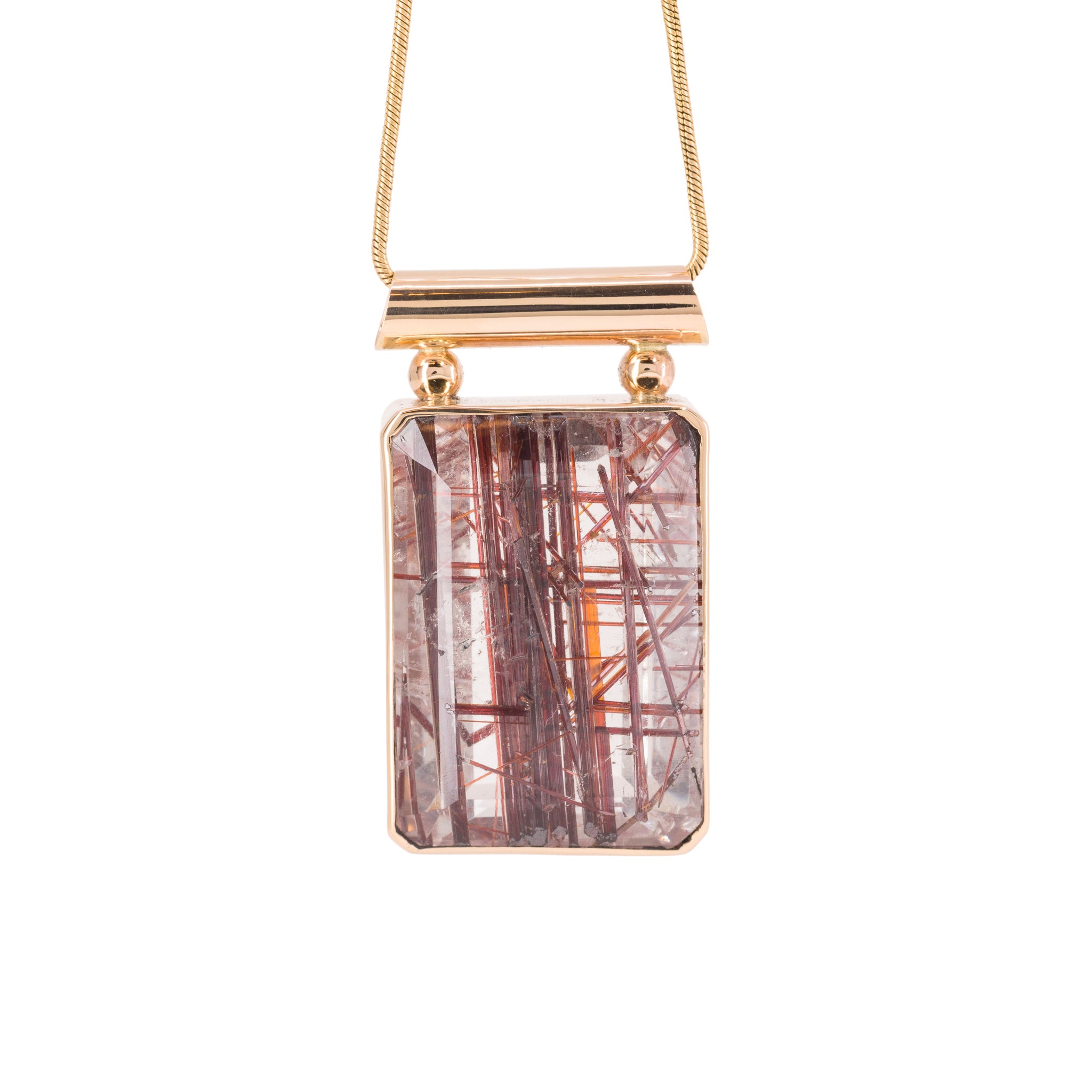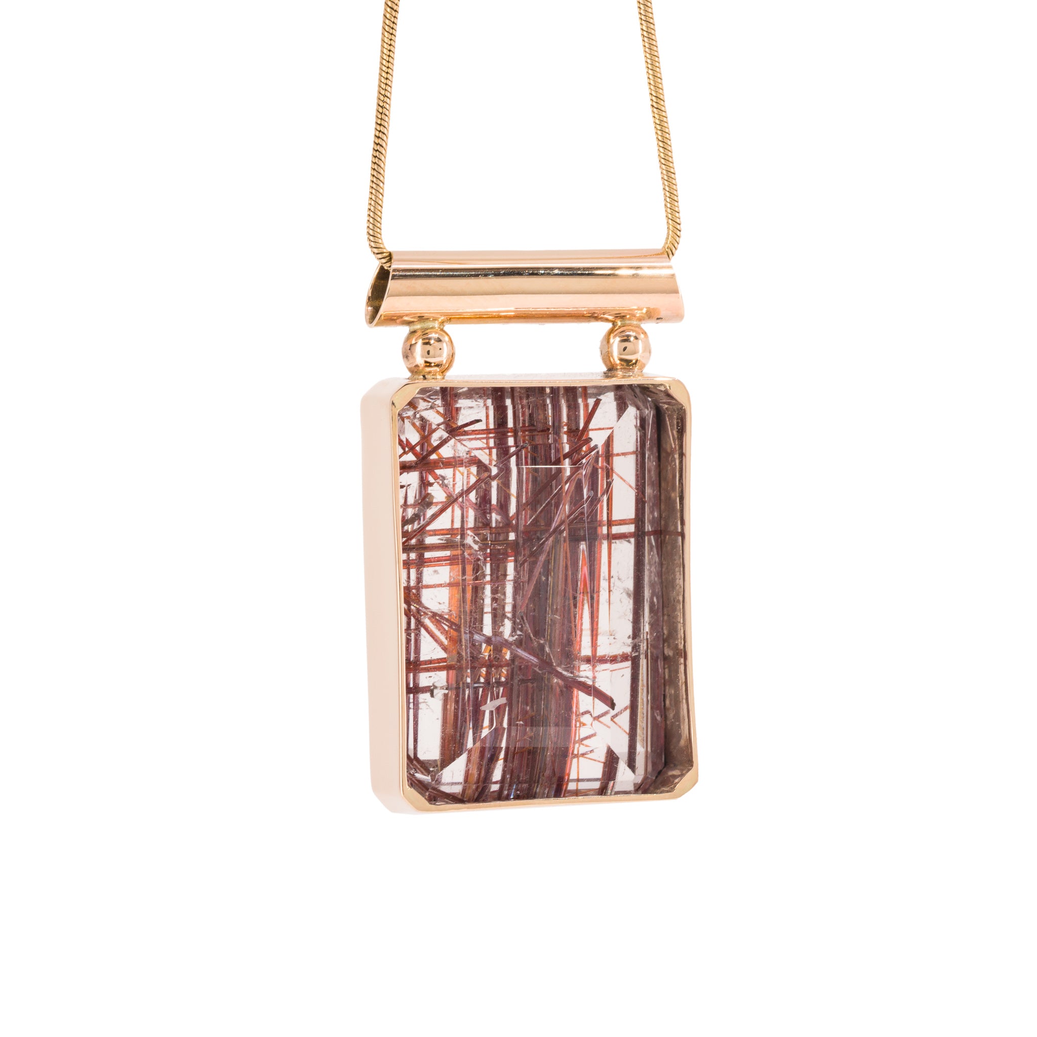 Reticulated Rutilated Quartz 49.12 Carat 14k Handcrafted Gemstone Pendant