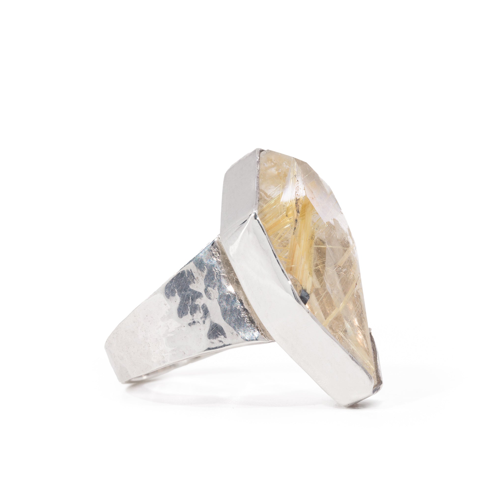 Rutilated Quartz 17.3 Carat Sterling Silver Handcrafted Gemstone Ring