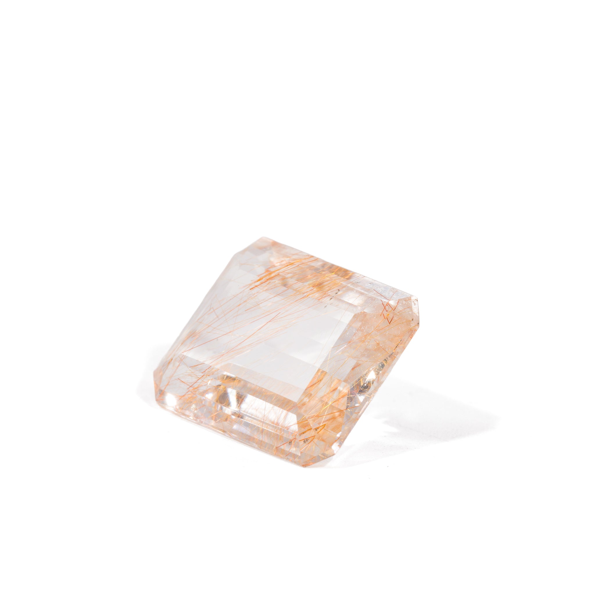 This dazzling 24.33 carat faceted Rutilated Quartz gemstone displays golden needle-like inclusions suspended within crystal-clear quartz. Its brilliant faceting enhances the shimmer of the rutile threads, making this a truly unique and eye-catching piece for collectors or custom jewelry designs.