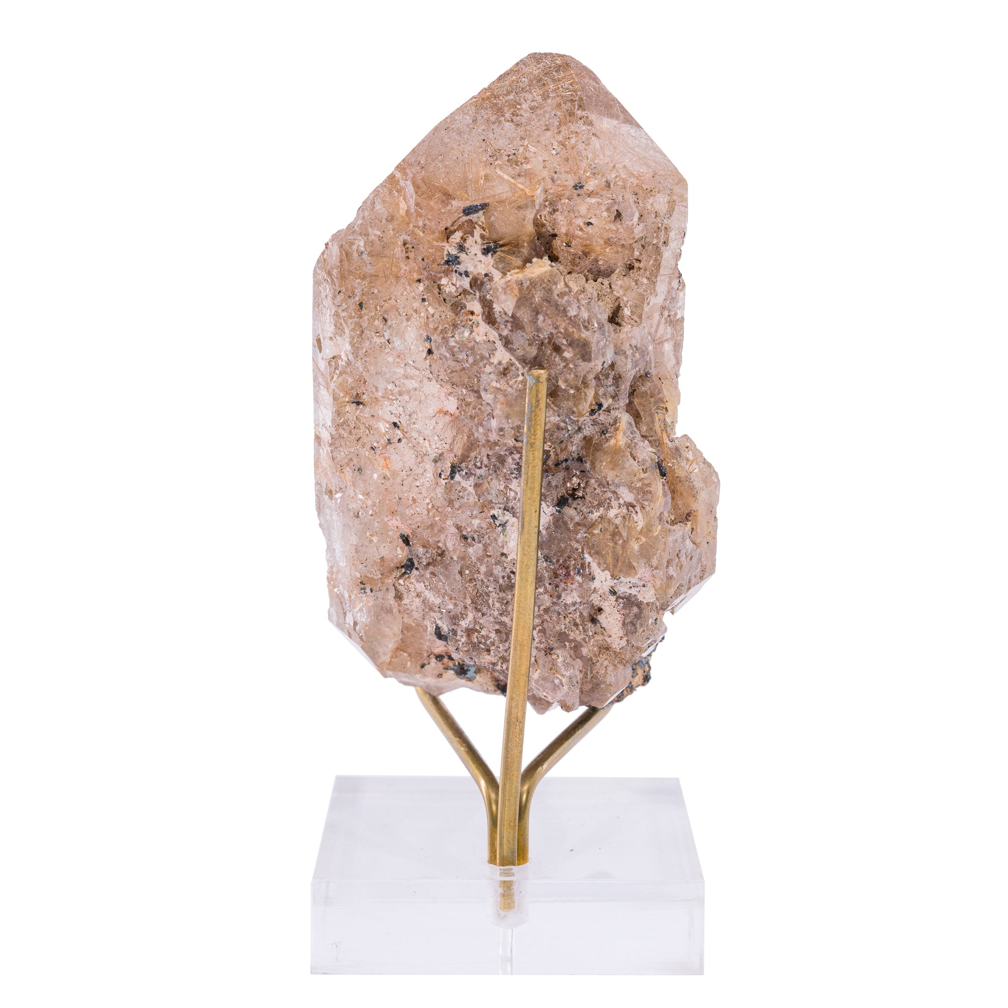 This perfectly palm-sized specimen features glistening gold inclusions of Rutile and a beautiful natural crystal point. A dazzling and engrossing crystal, sure to occupy any crystal lover for hours!