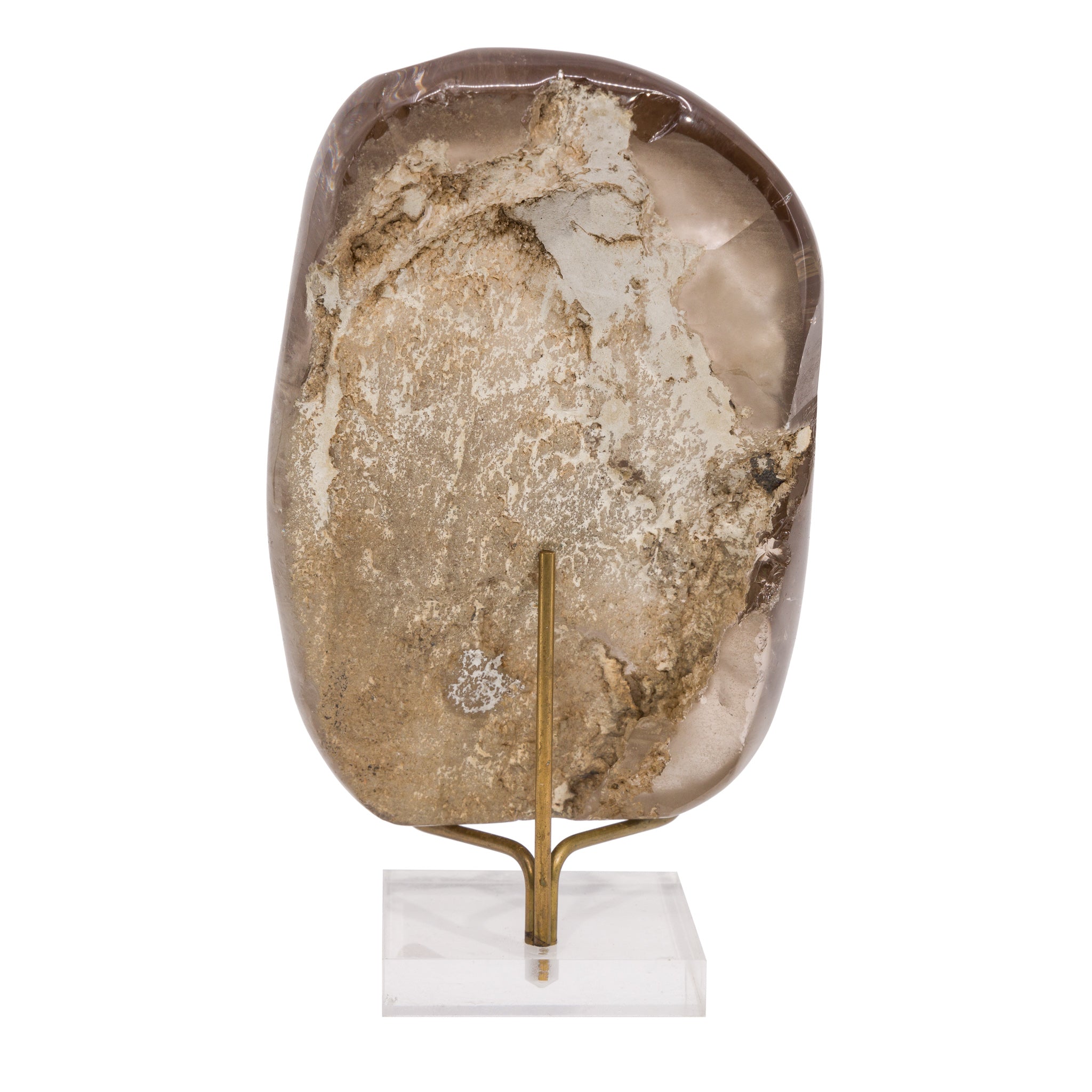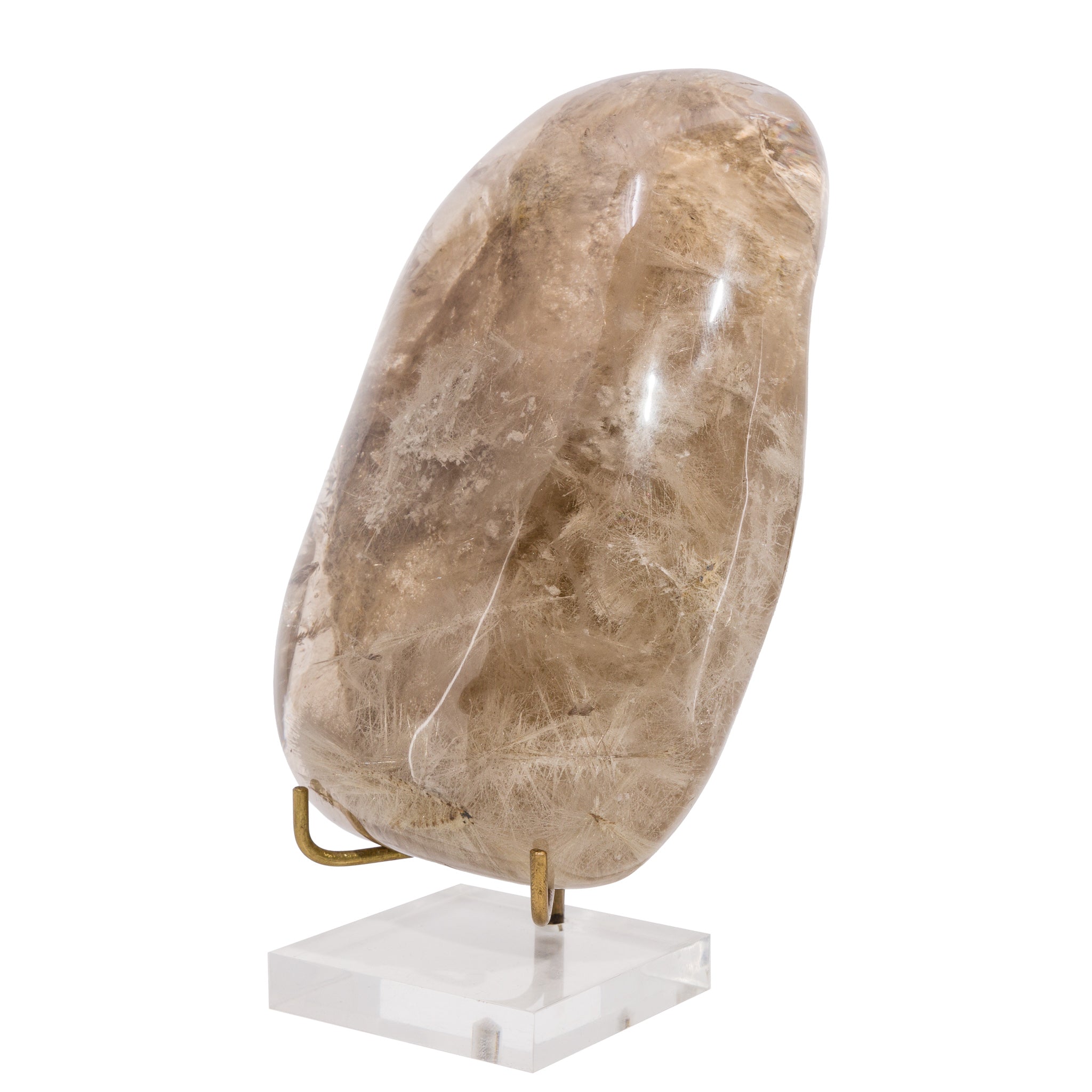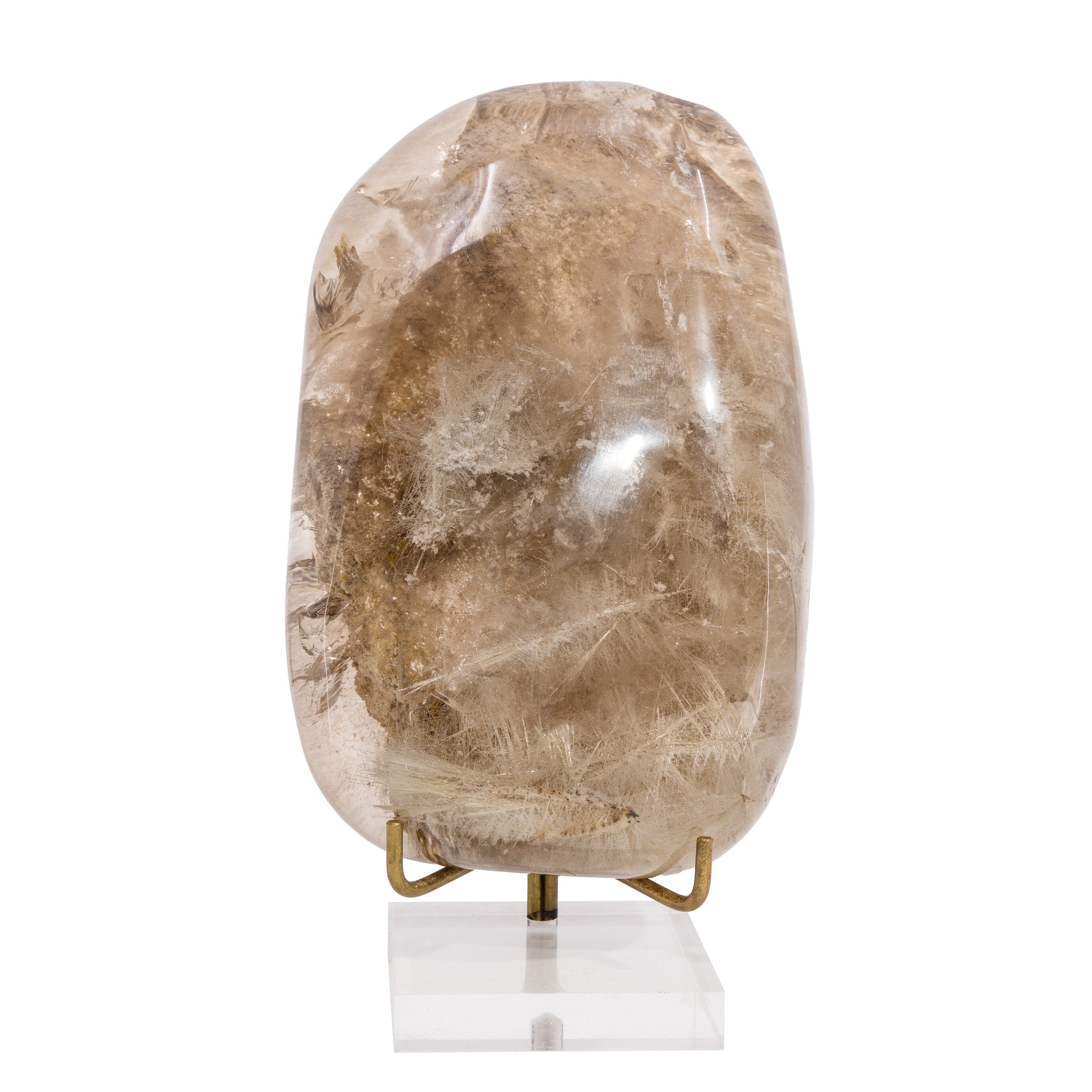 This unique polished quartz crystal evokes images of a desert landscape, with an expert polish that reveals a stunning vista of dusty brown rutile fibers floating above rock matrix inclusions! Gorgeous!