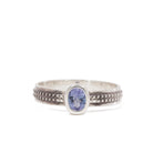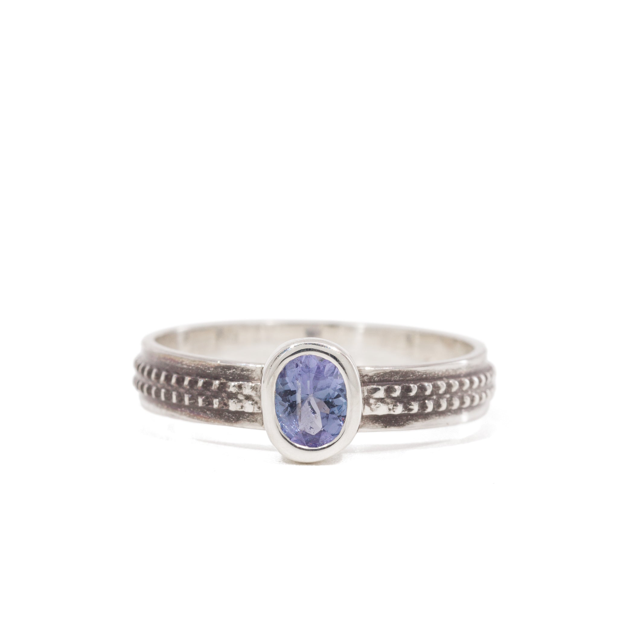 Of all the colors that sapphire comes in, this shade of midnight blue is probably the one that comes to mind most often when this iconic gemstone comes up. Brilliantly faceted and set into a sterling silver ring with a rugged mill grained band, this a superb little work of wearable art!