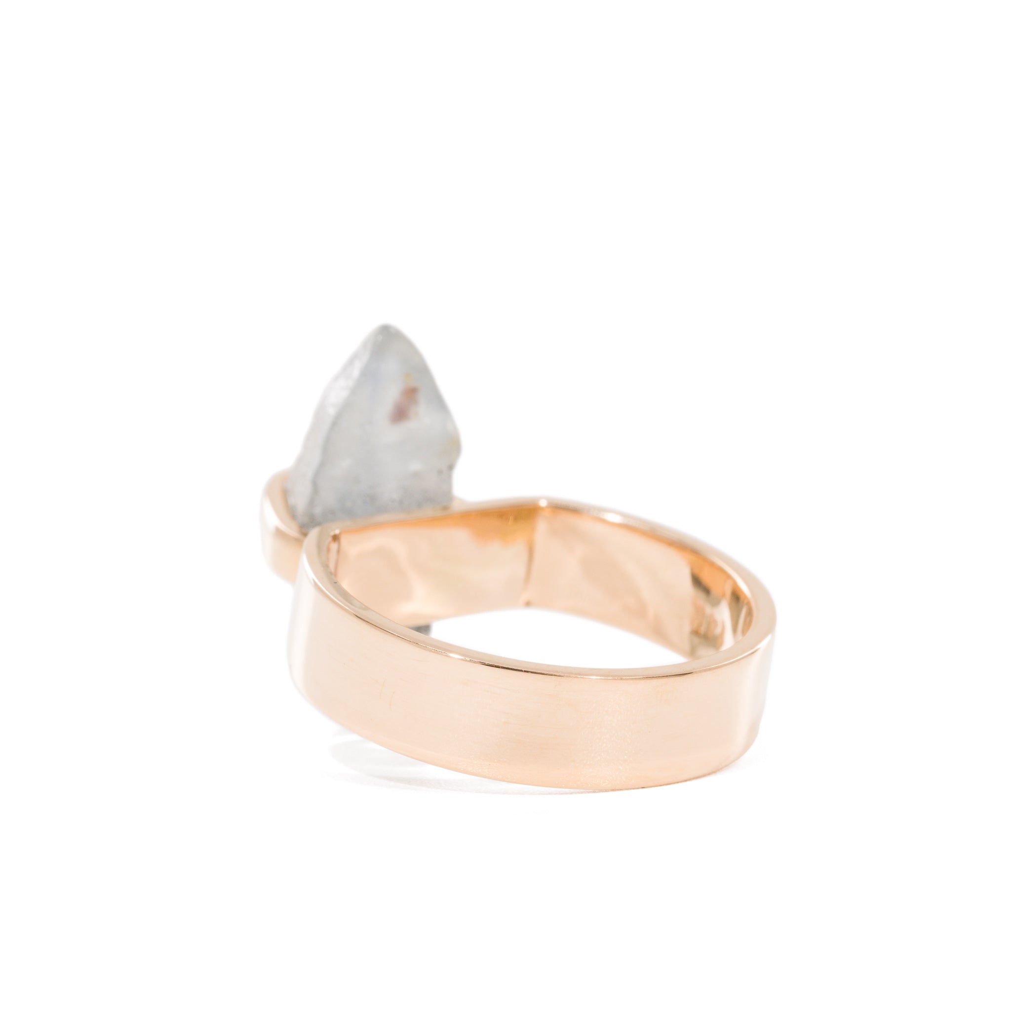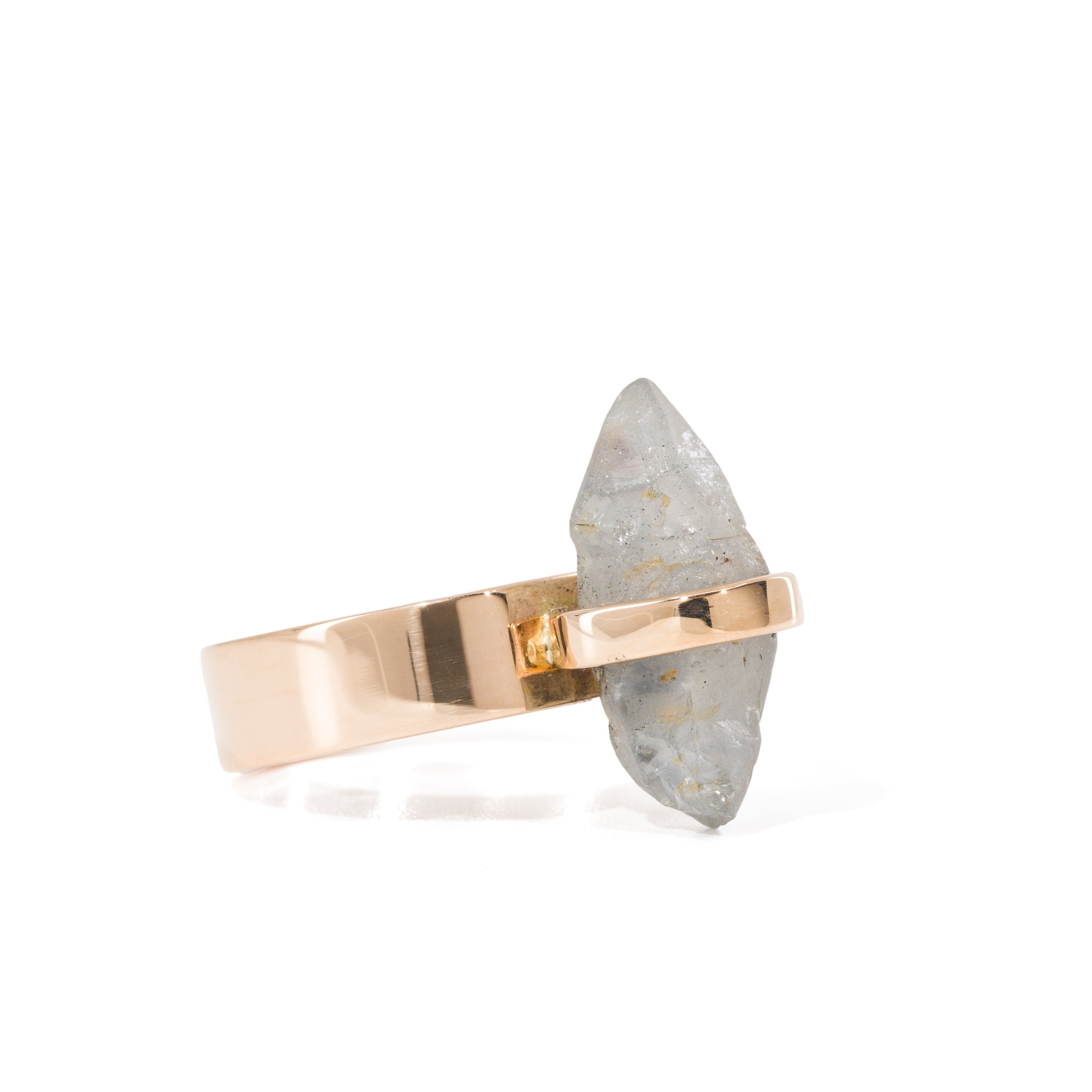 Faceted sapphires are great, but how cool is it to be able to wear a totally natural sapphire crystal in the way that it grew? Soft blue and with natural points on both sides, and set into a contemporary 14k gold ring, this crystal ring is sure to make a splash!