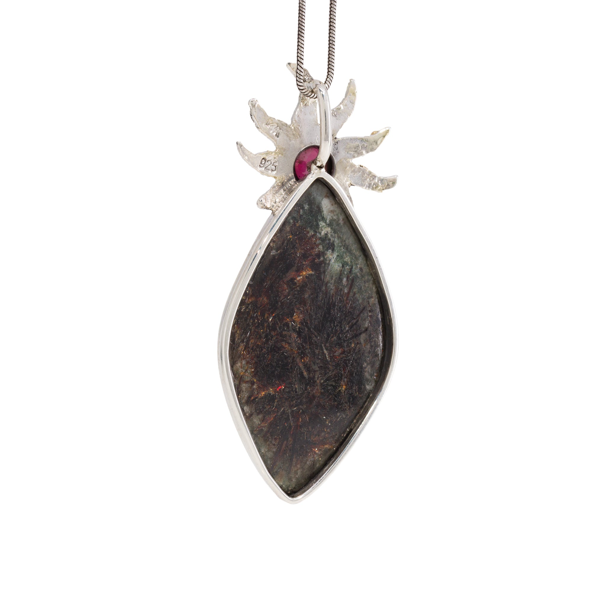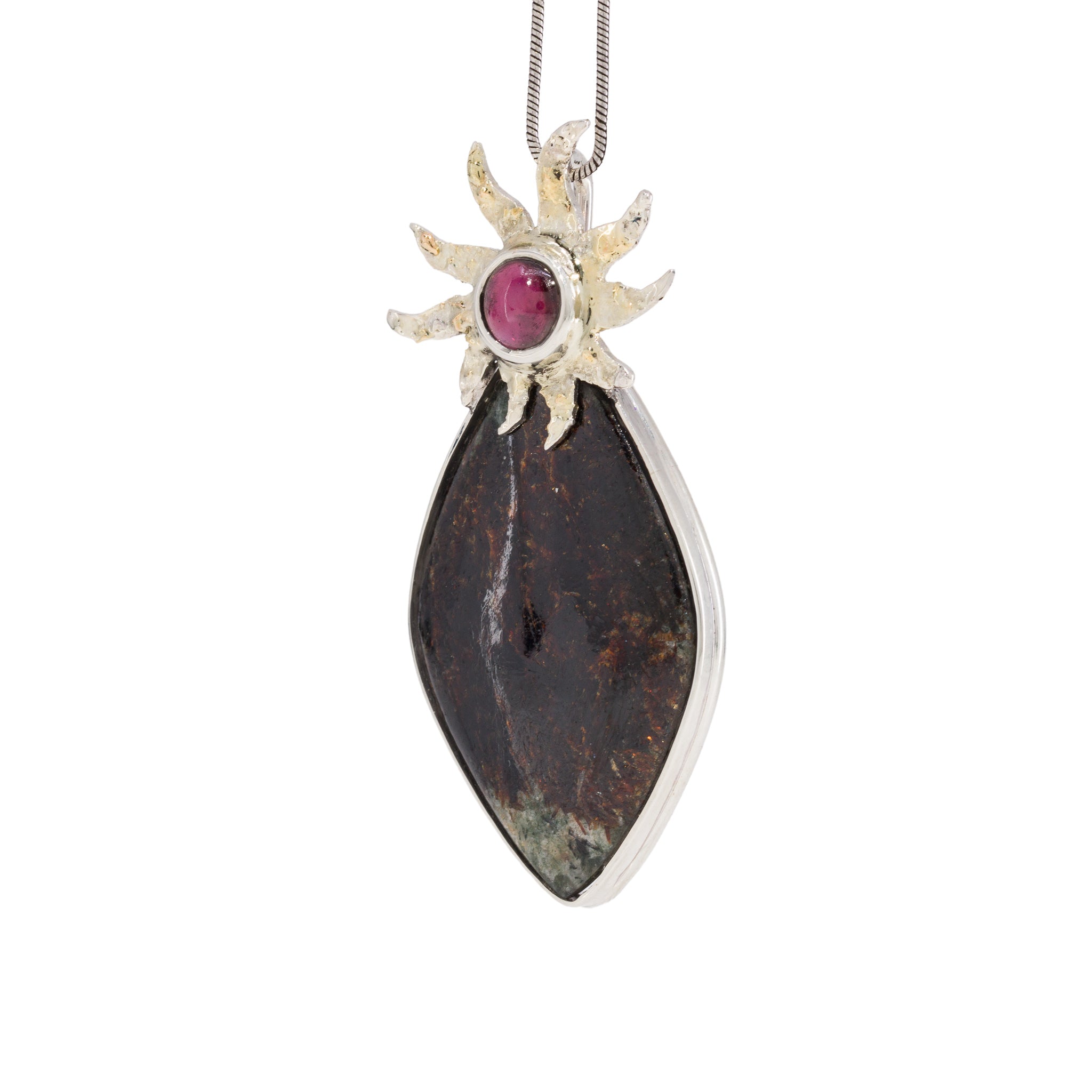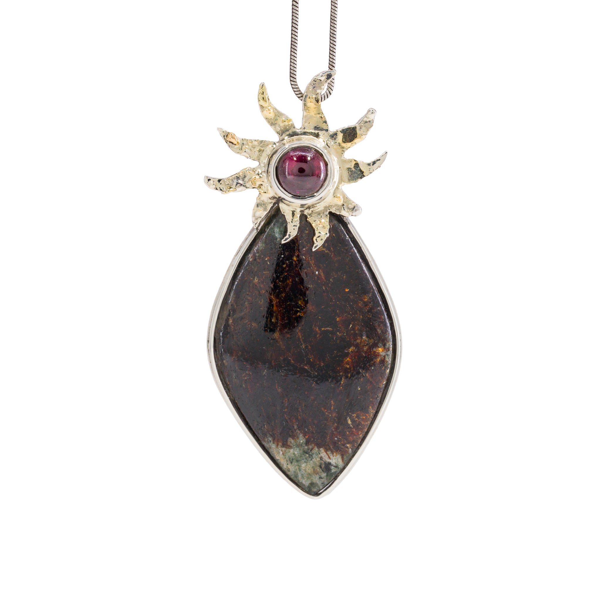 Astrophyllite & Garnet Sterling Silver & 14k Handcrafted Gemstone Pendant