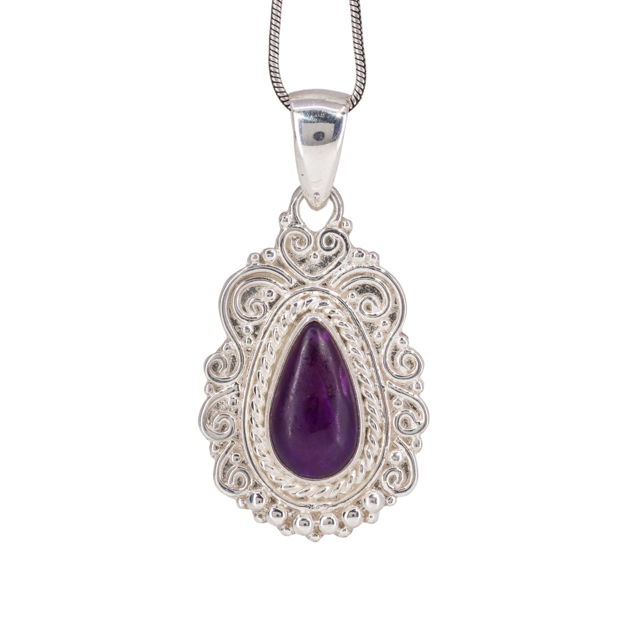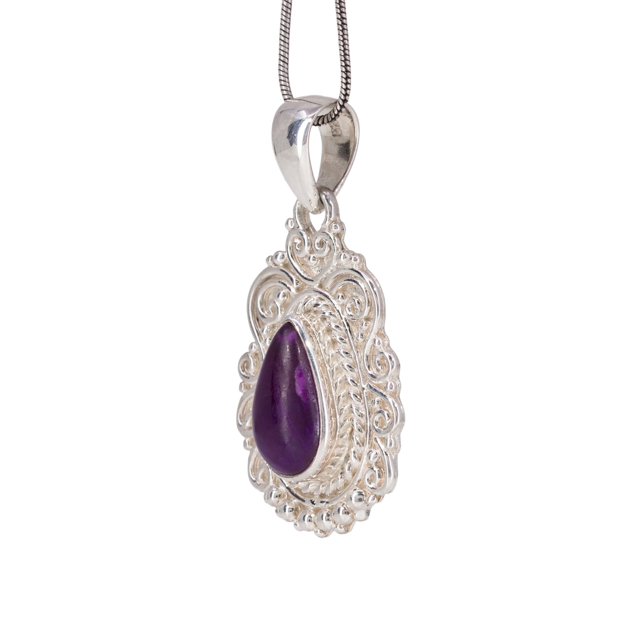 Sugilite Teardrop Sterling Silver Handcrafted Gemstone Pendant