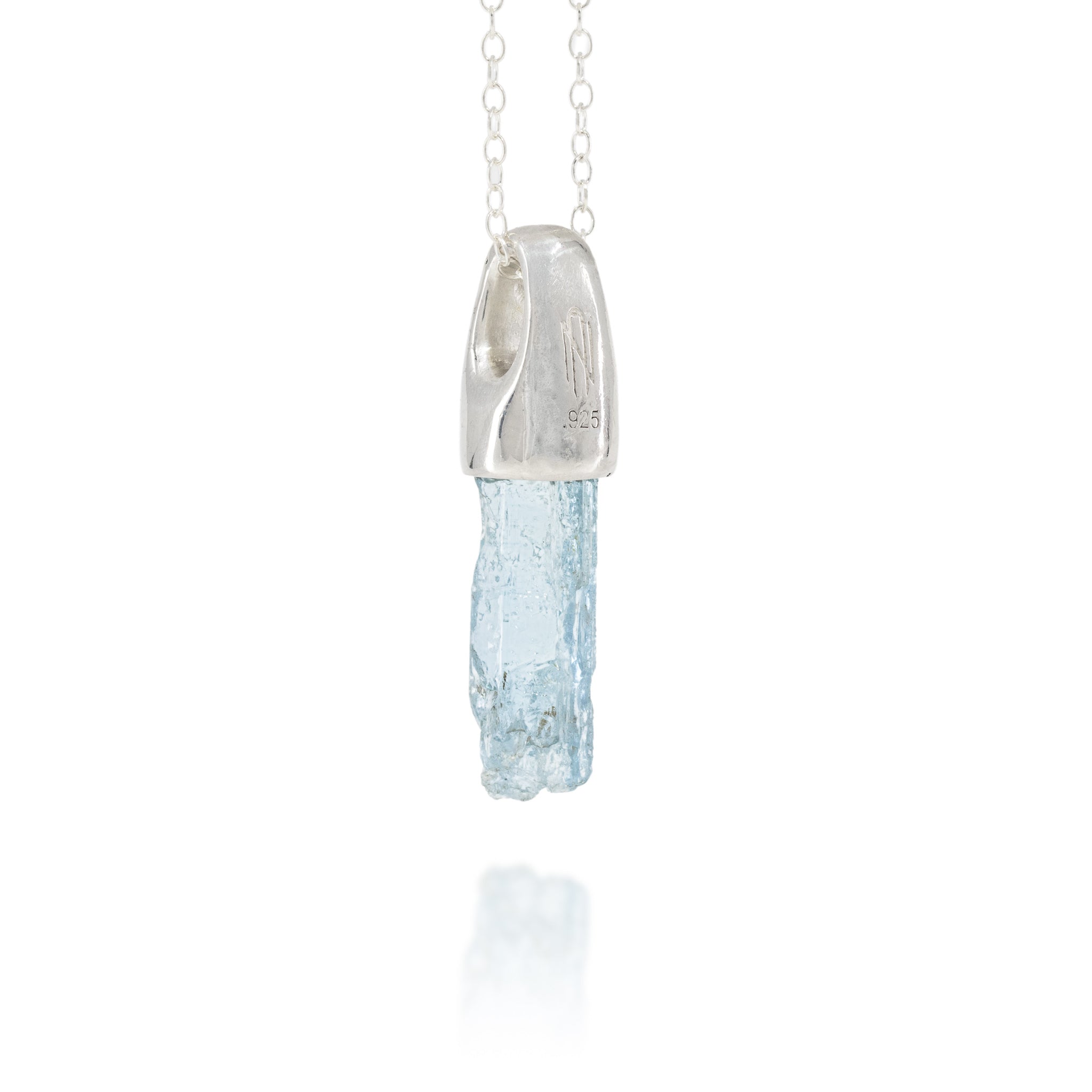 Etched Aquamarine Handcrafted Sterling Silver Natural Crystal Pendant