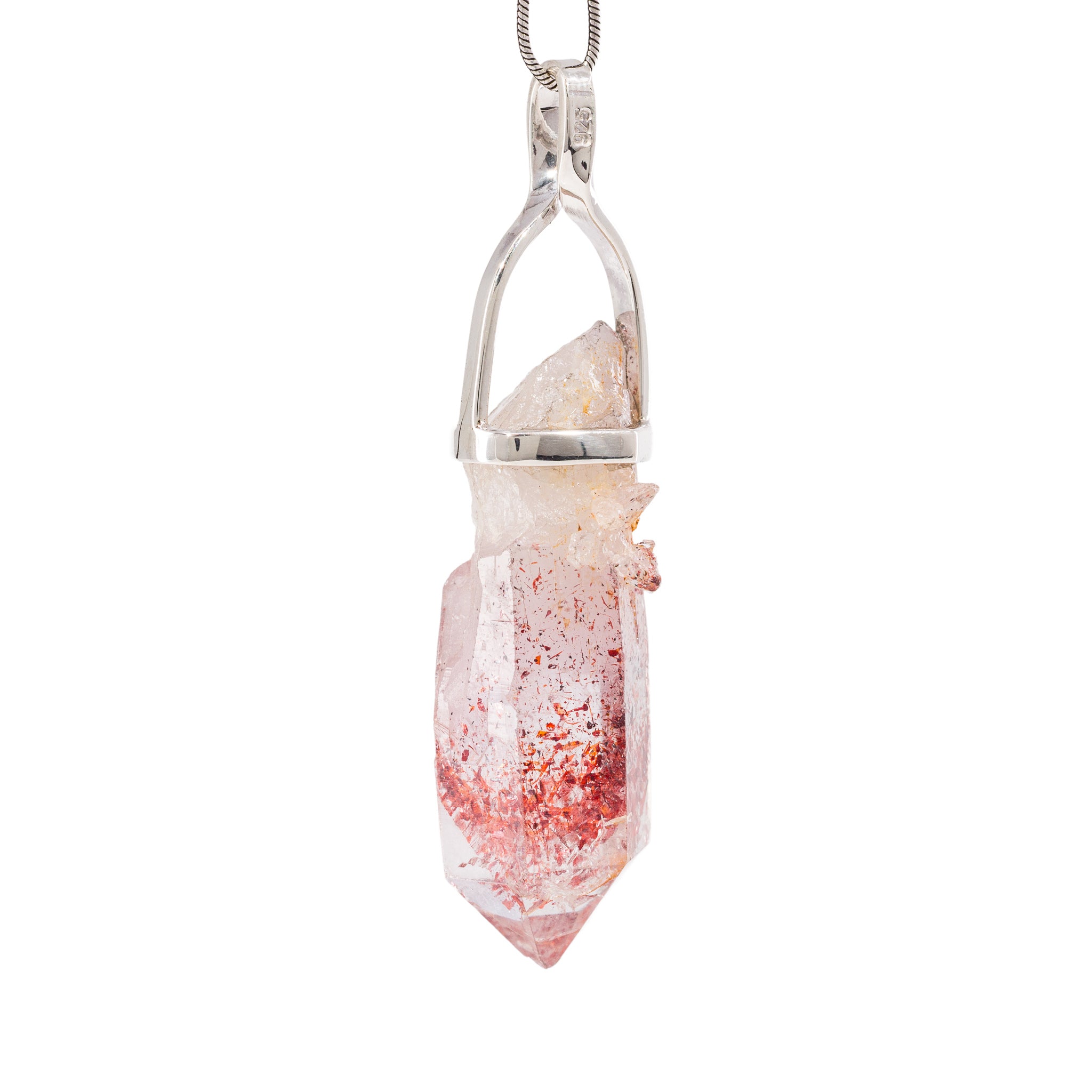 Hematite Phantom Quartz 49.3 Carat Sterling Silver Handcrafted Natural Crystal Pendant