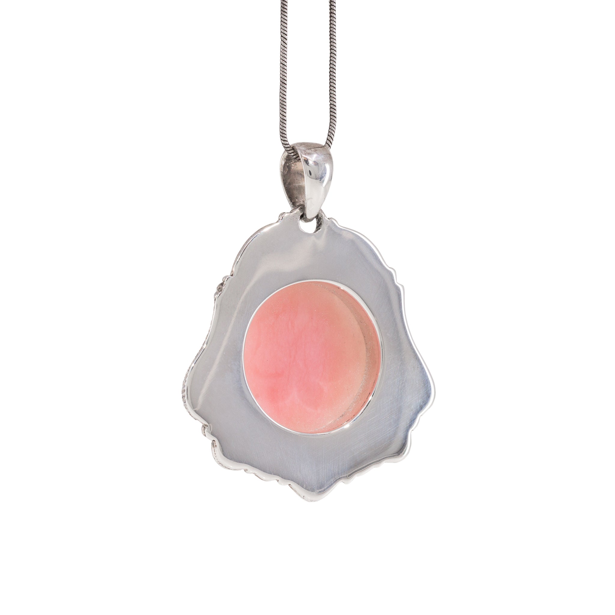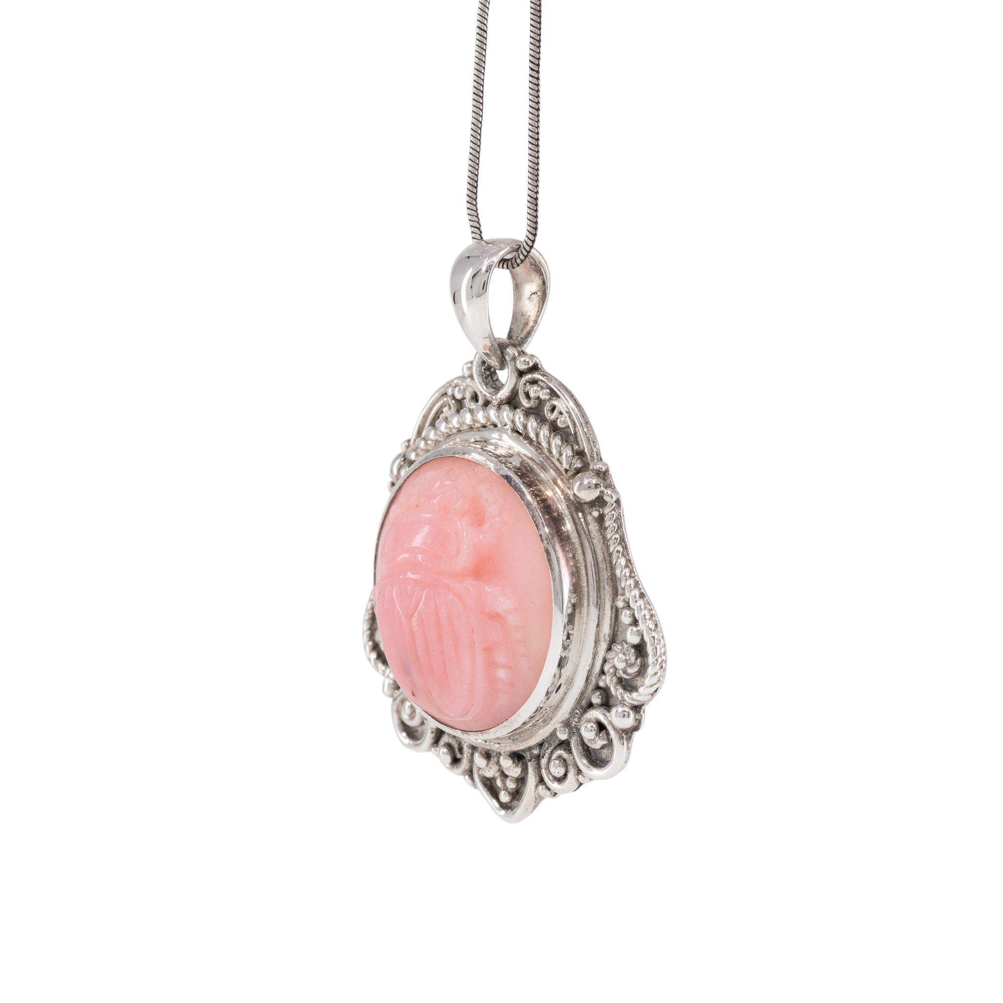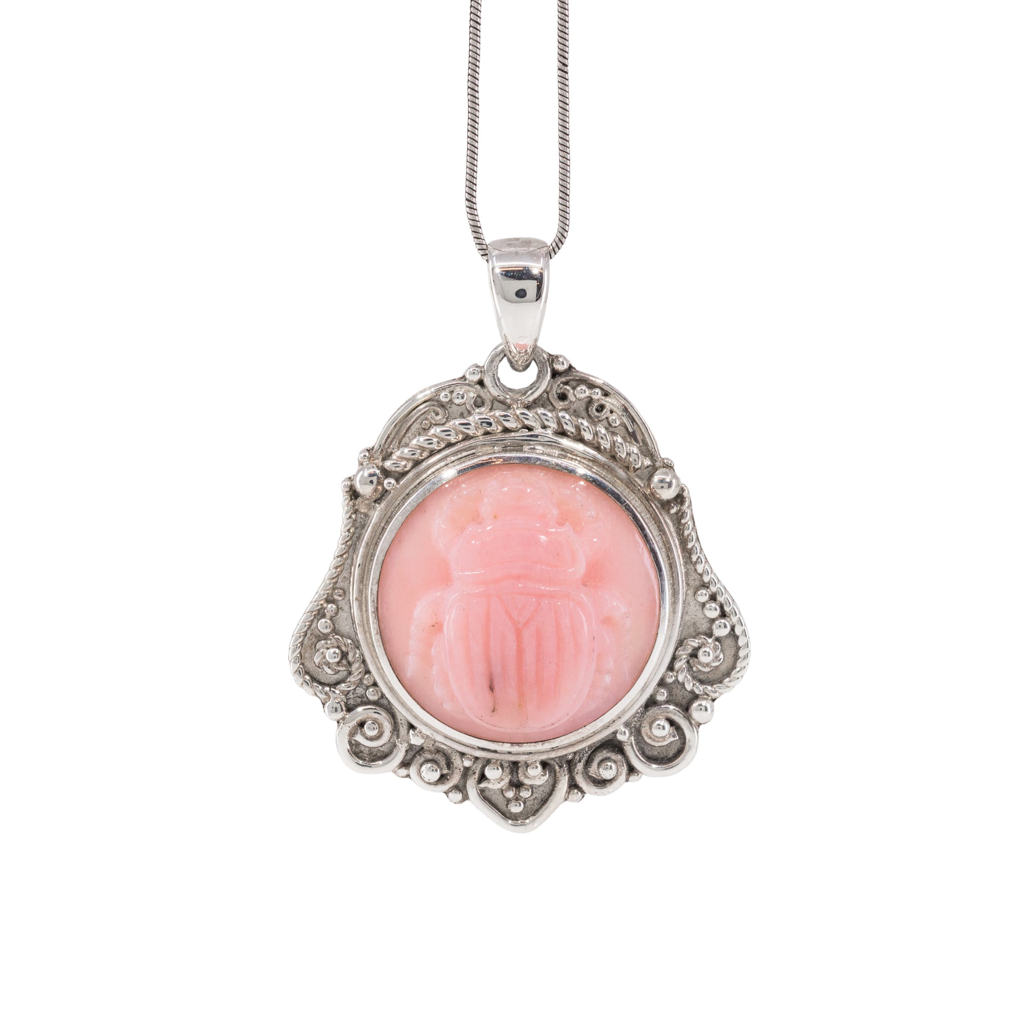 Pink Opal Scarab Sterling Silver Handcrafted Carved Gemstone Pendant