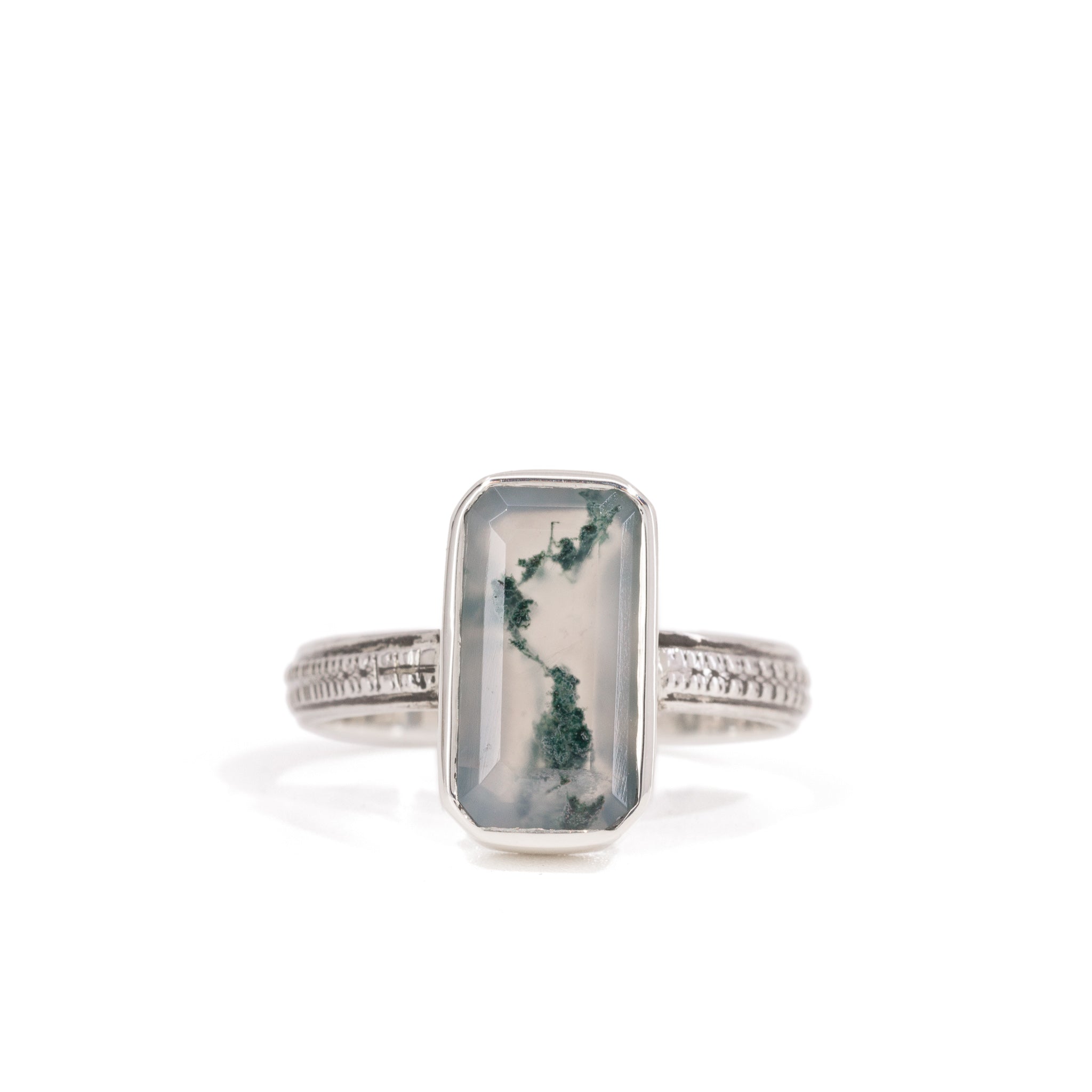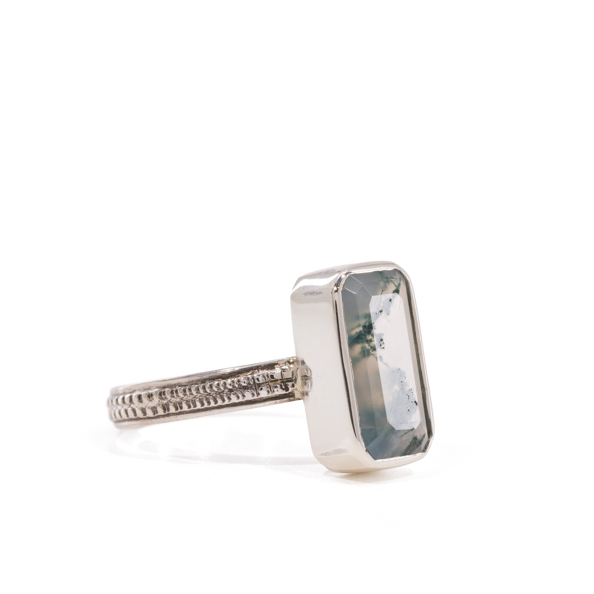 Moss Agate 2.87 Carat Sterling Silver Handcrafted Gemstone Ring