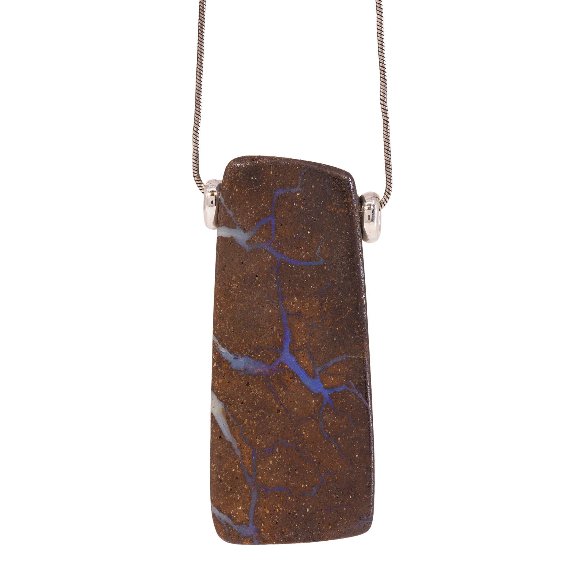 Boulder Opal 66.02 Carat Sterling Silver Handcrafted Gemstone Slider Pendant