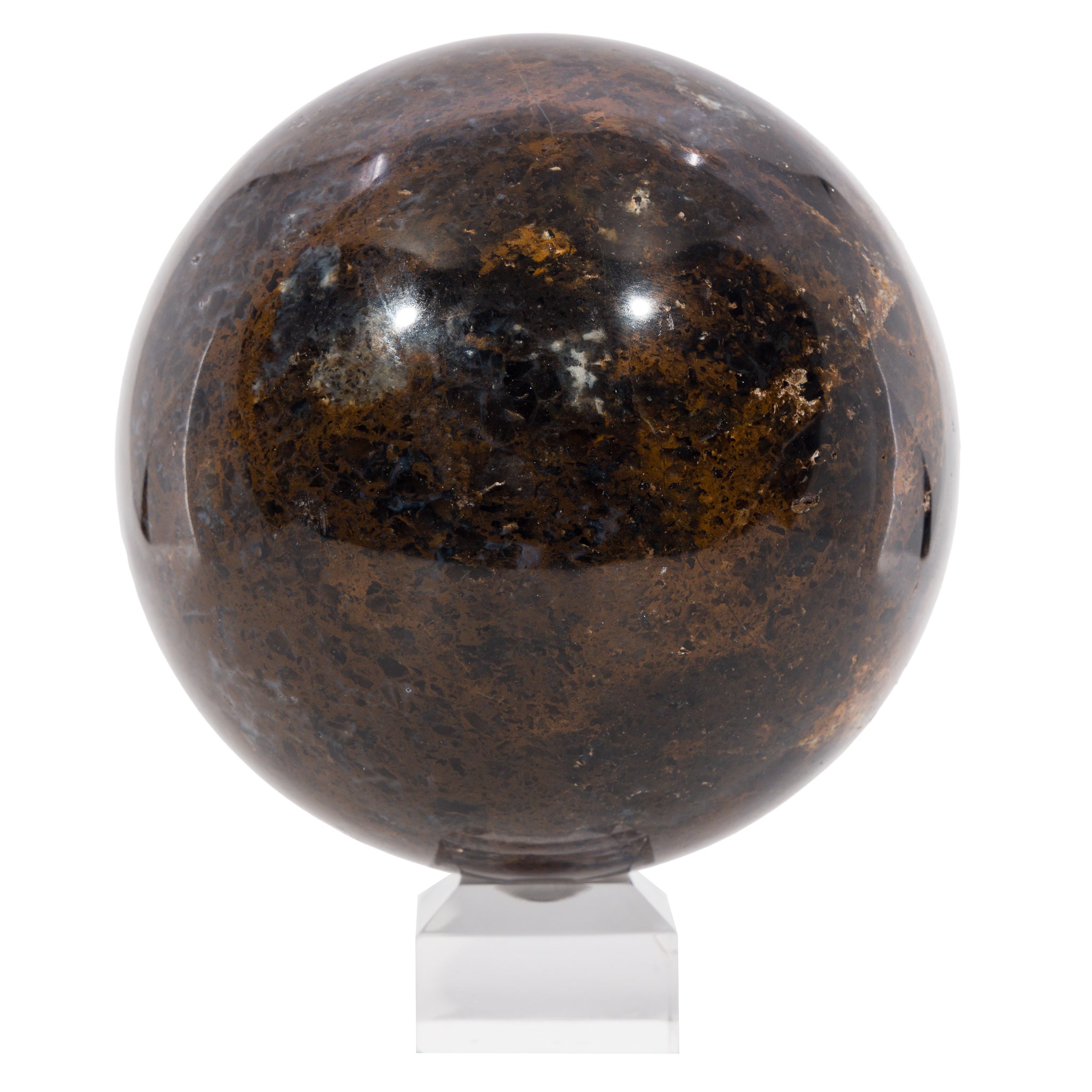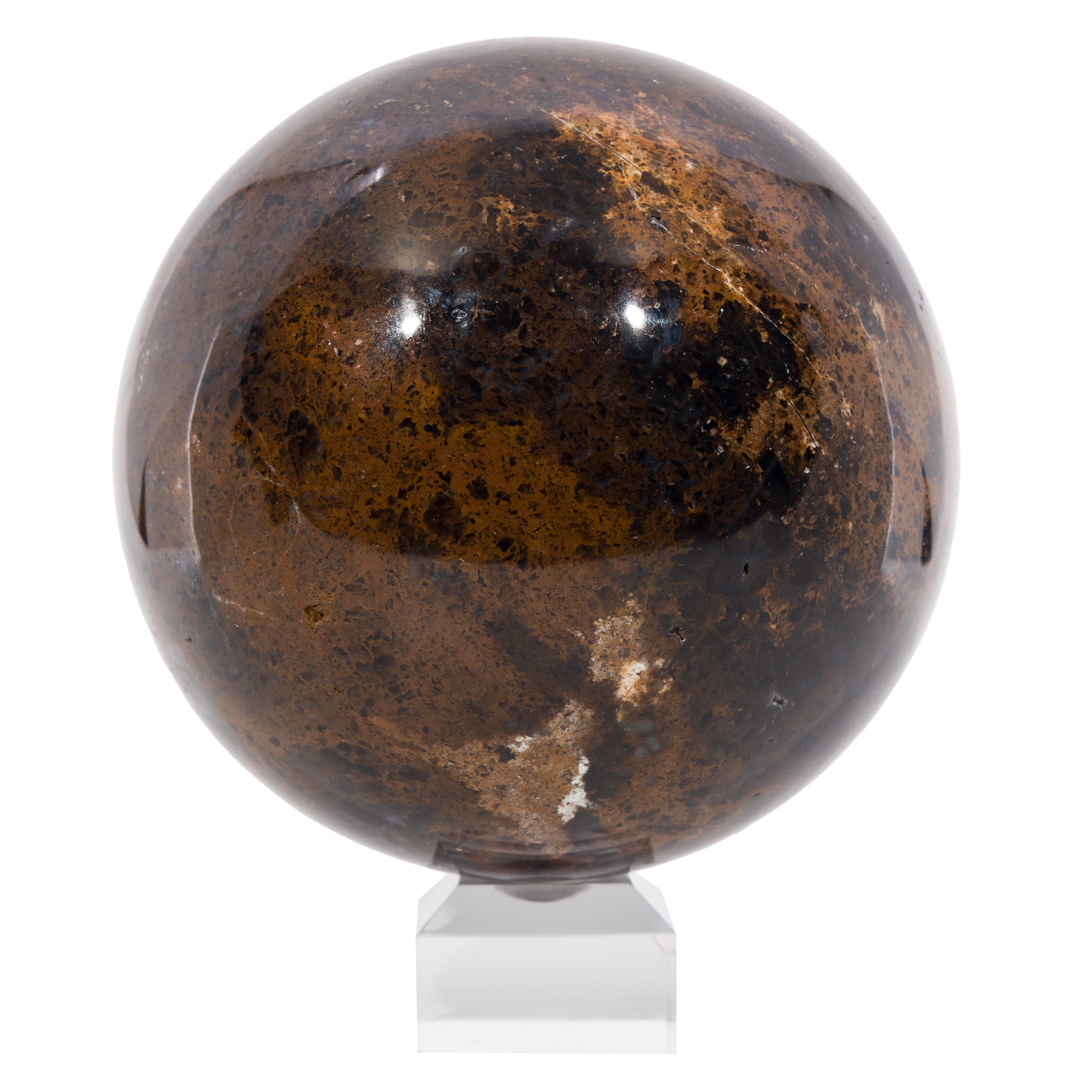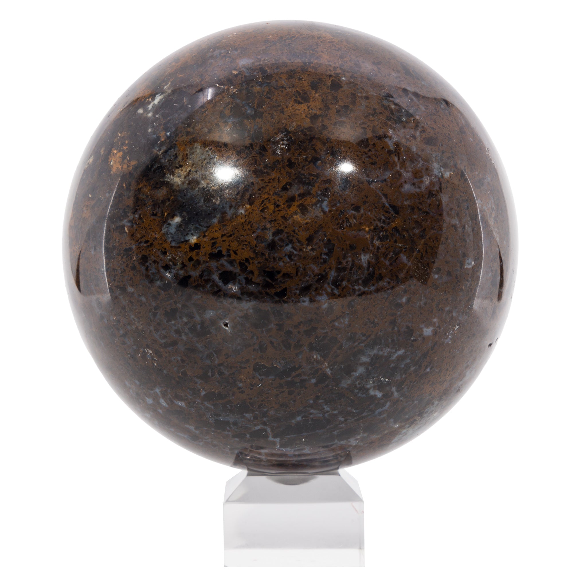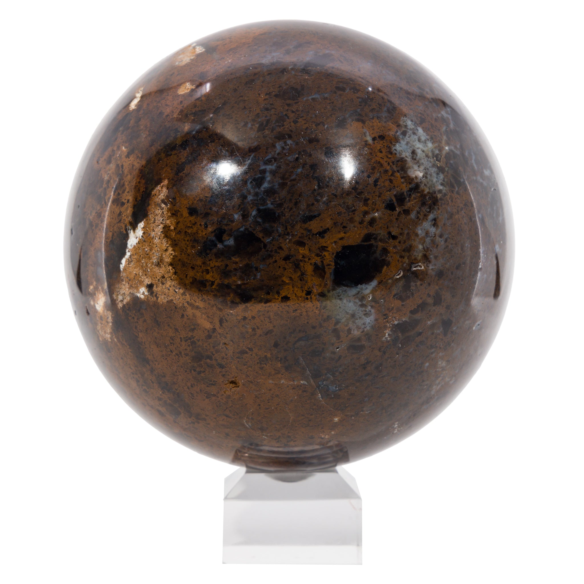 This large sphere feels like a poetic embodiment of the earth, with the deepest browns and muted slate tones faded to jet black all in one, large jasper sphere!