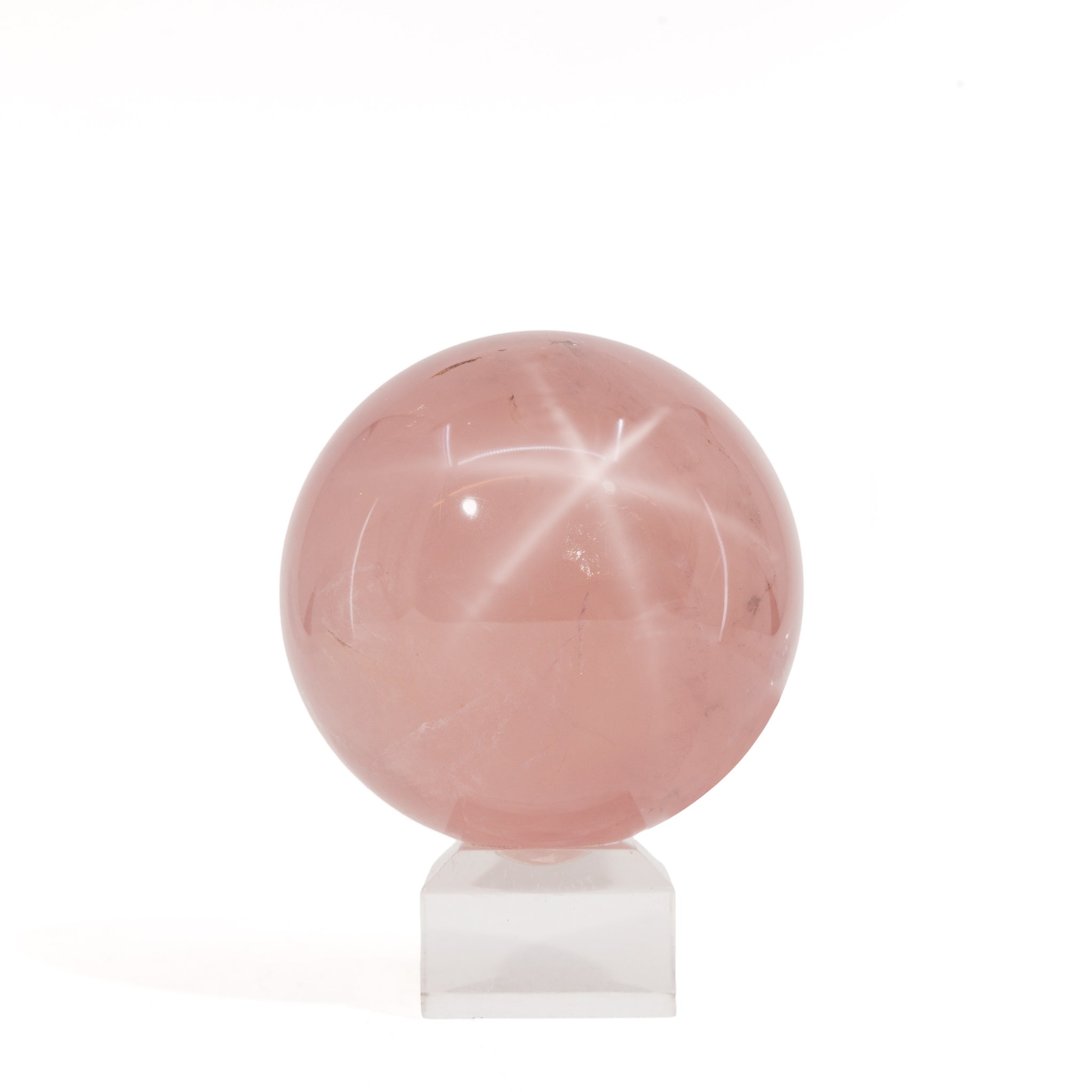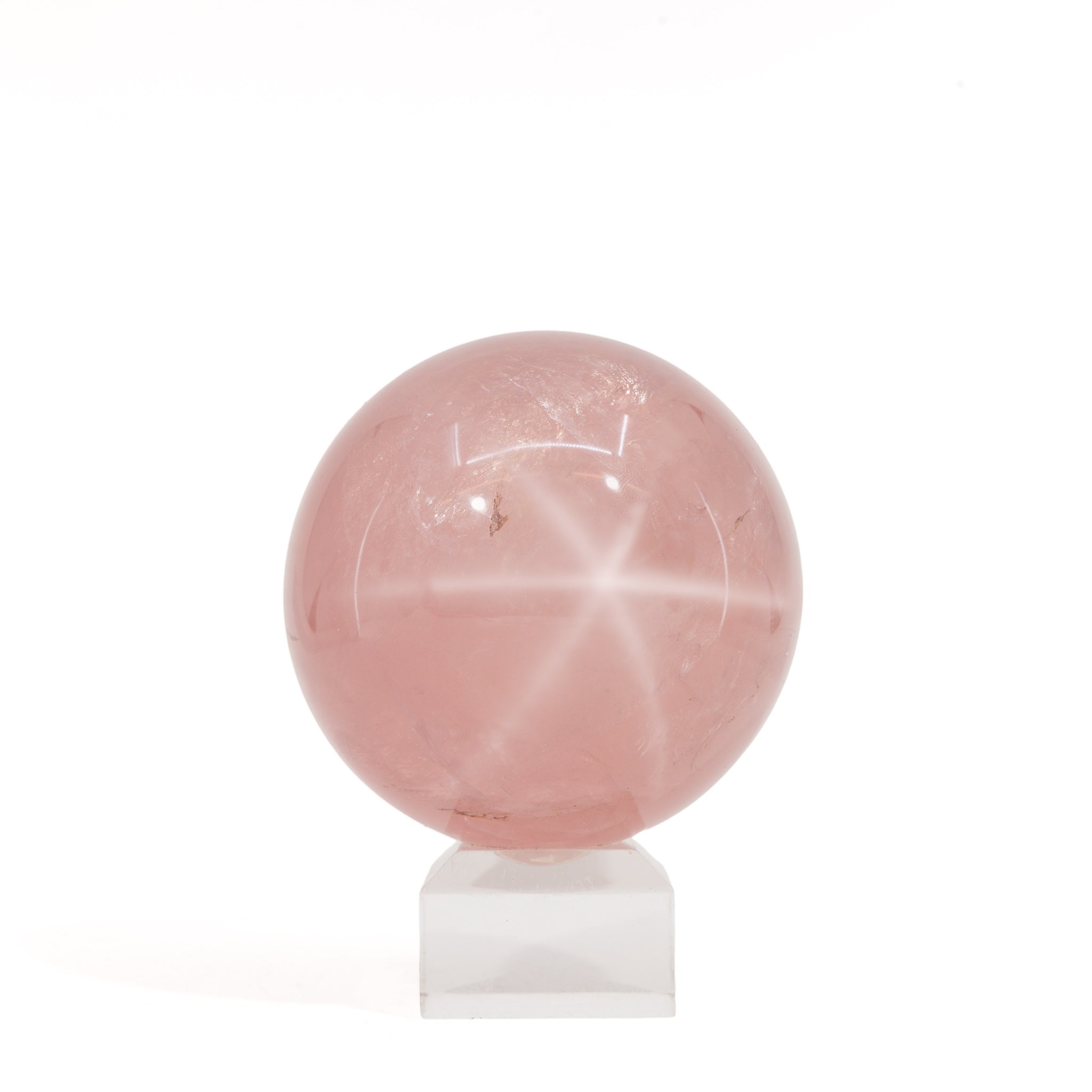 Natural polished Star Rose Quartz sphere with visible star asterism