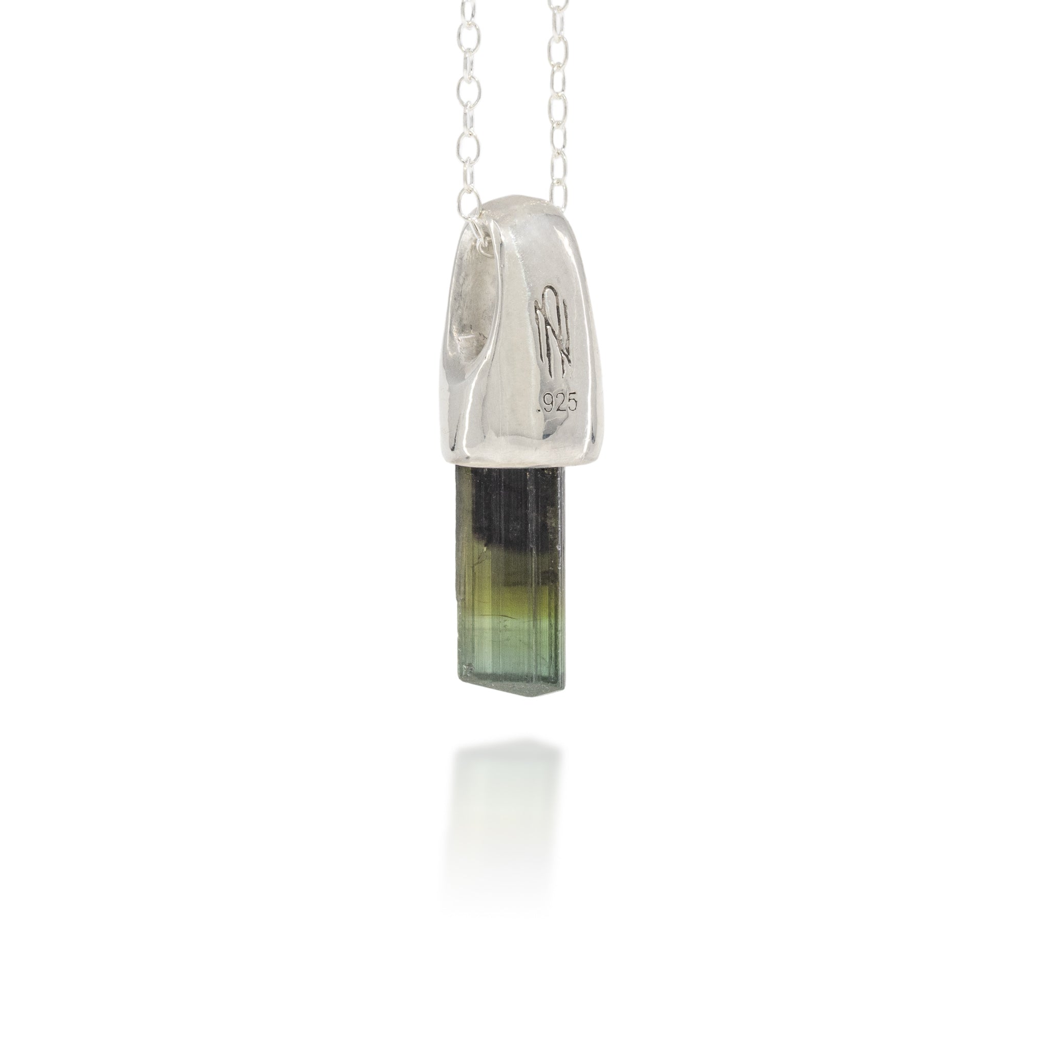 Bicolor Blue-Green Tourmaline Handcrafted Sterling Silver Natural Crystal Pendant