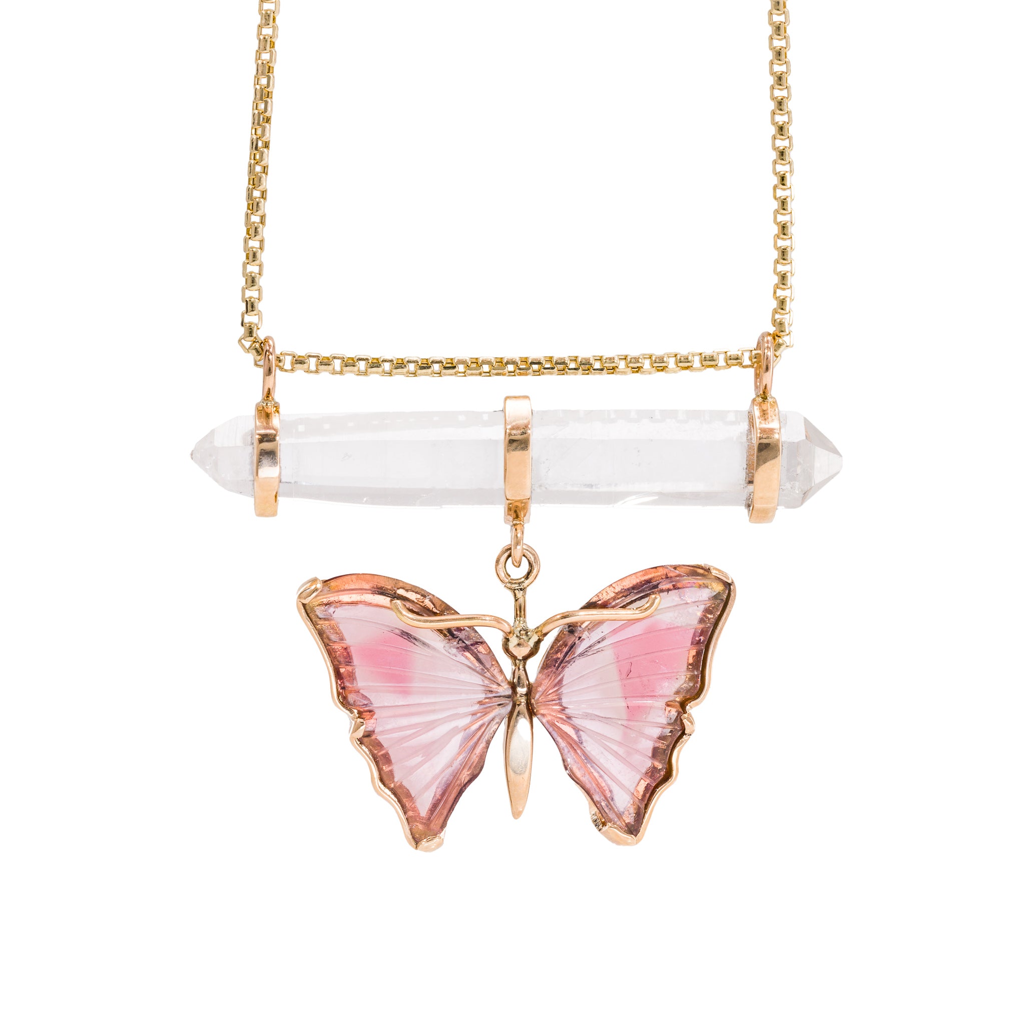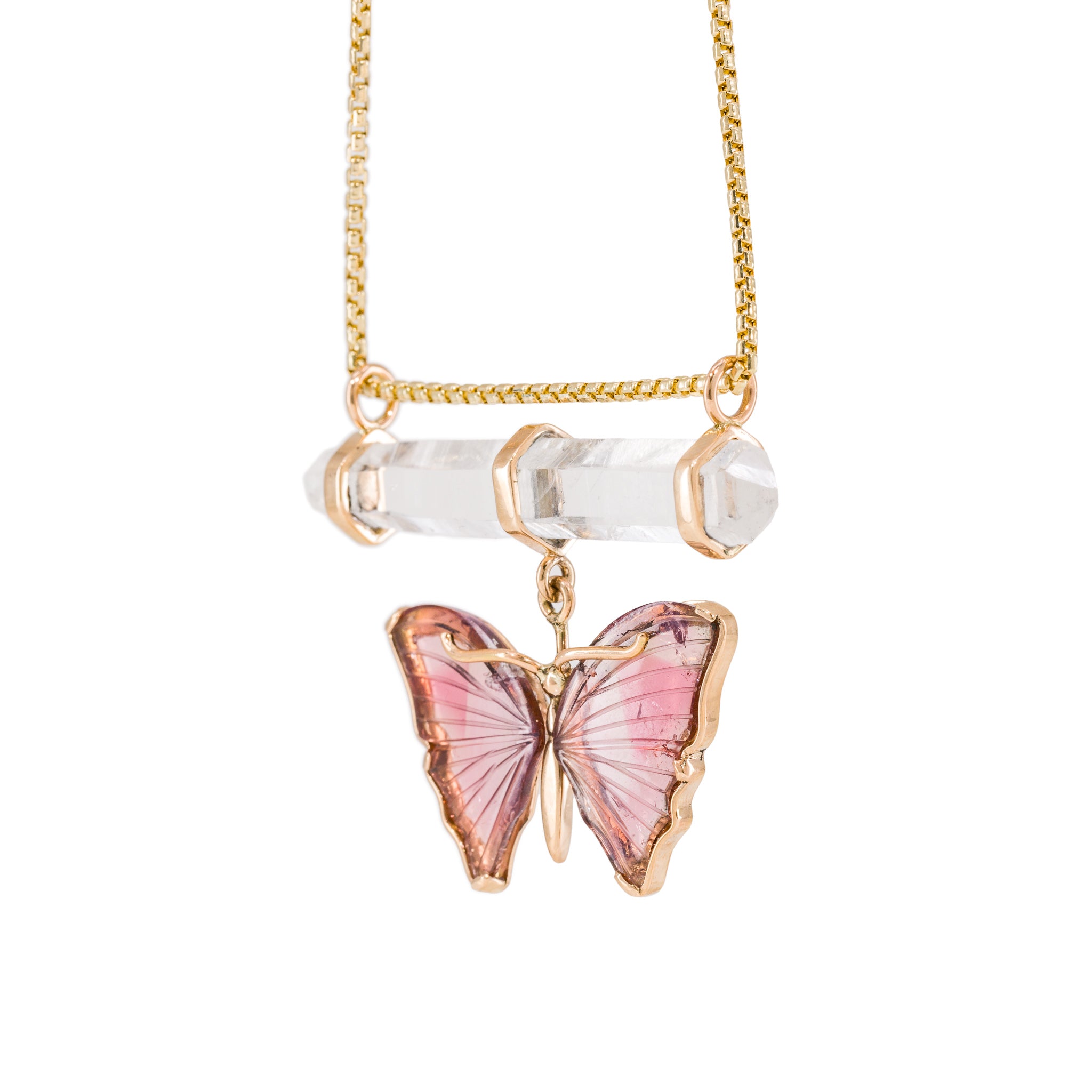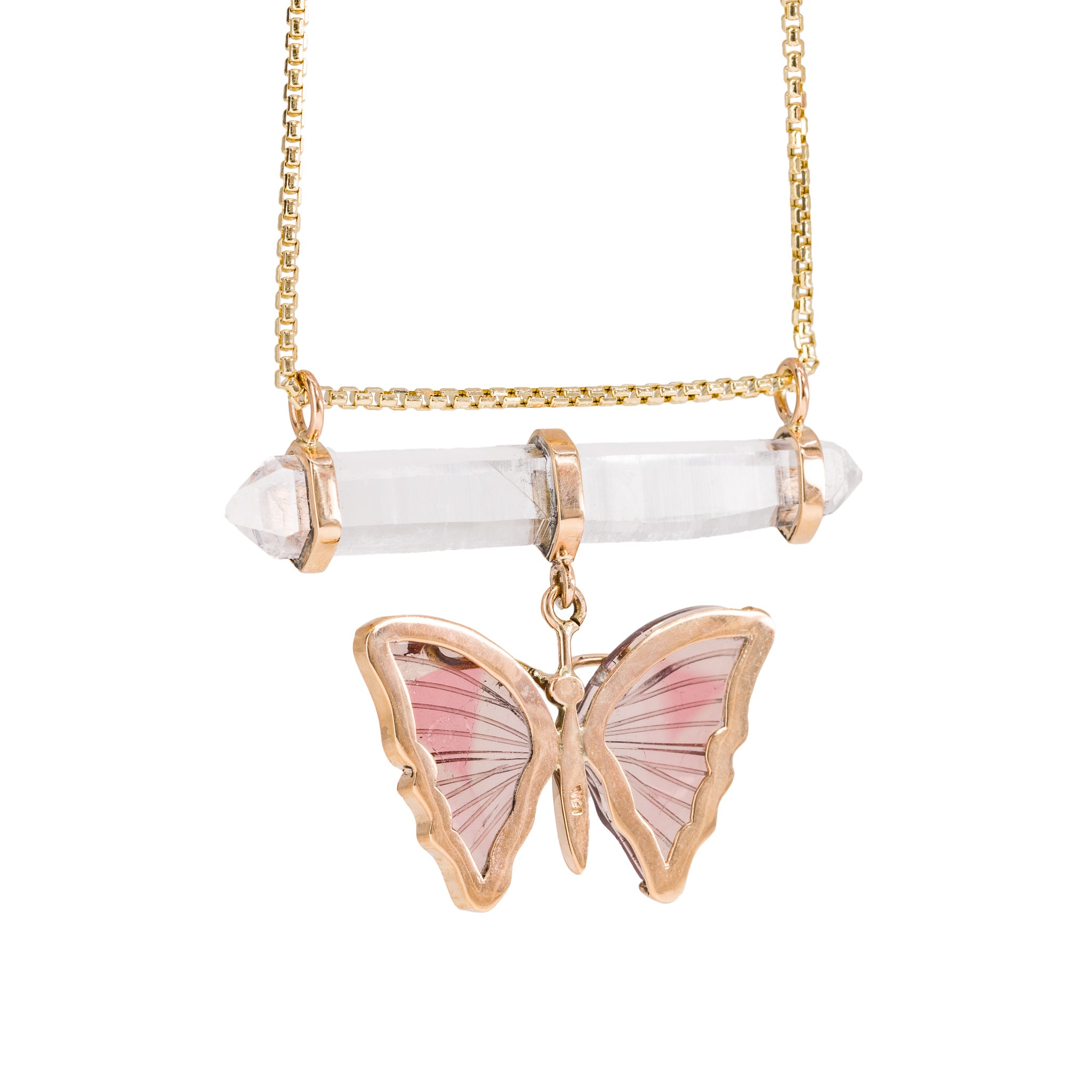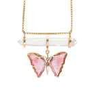 Quartz & Tourmaline 14k Handcrafted Natural Crystal Butterfly Pendant