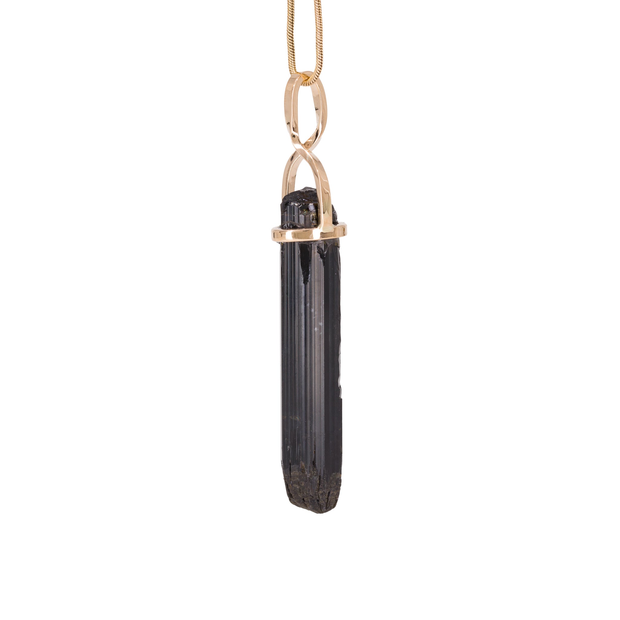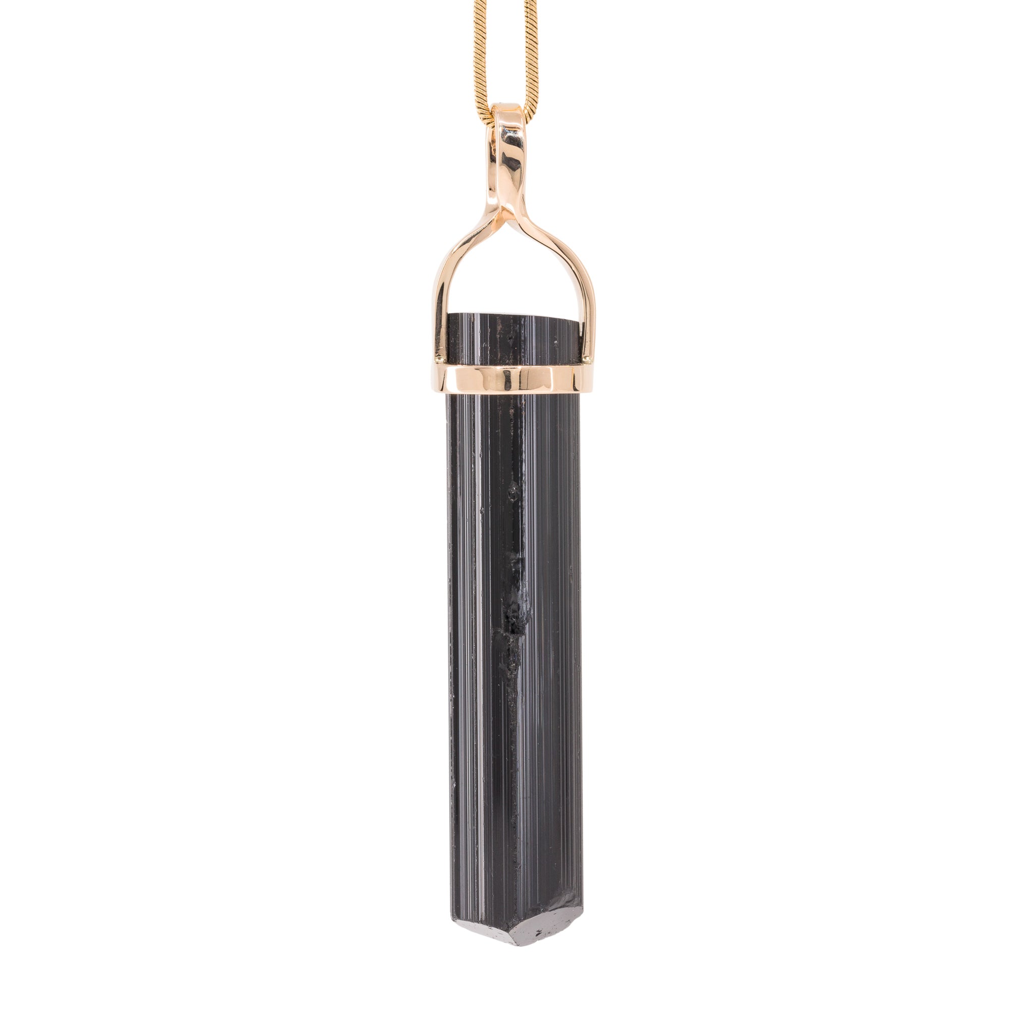 Black Tourmaline 44.77 Carat 14k Handcrafted Natural Crystal Pendant