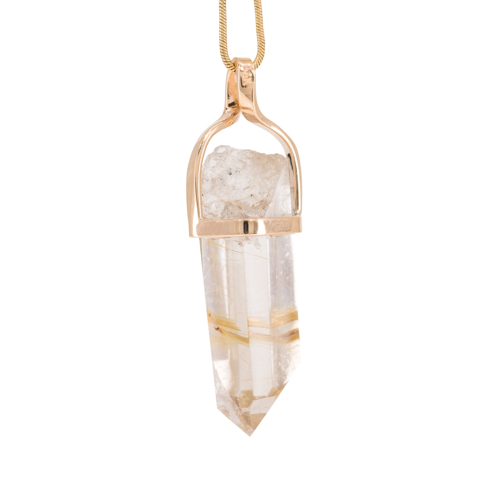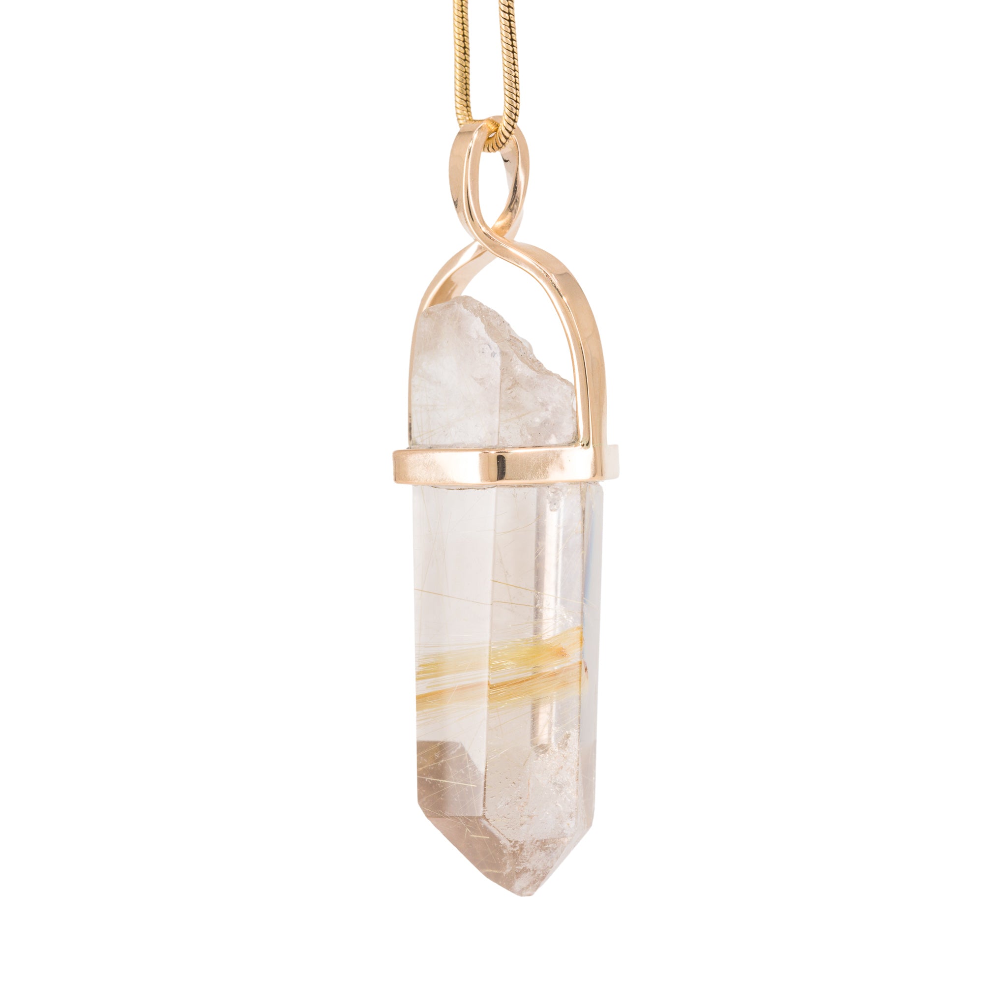 Rutilated Quartz 34.47 Carat 14k Handcrafted Natural Crystal Pendant