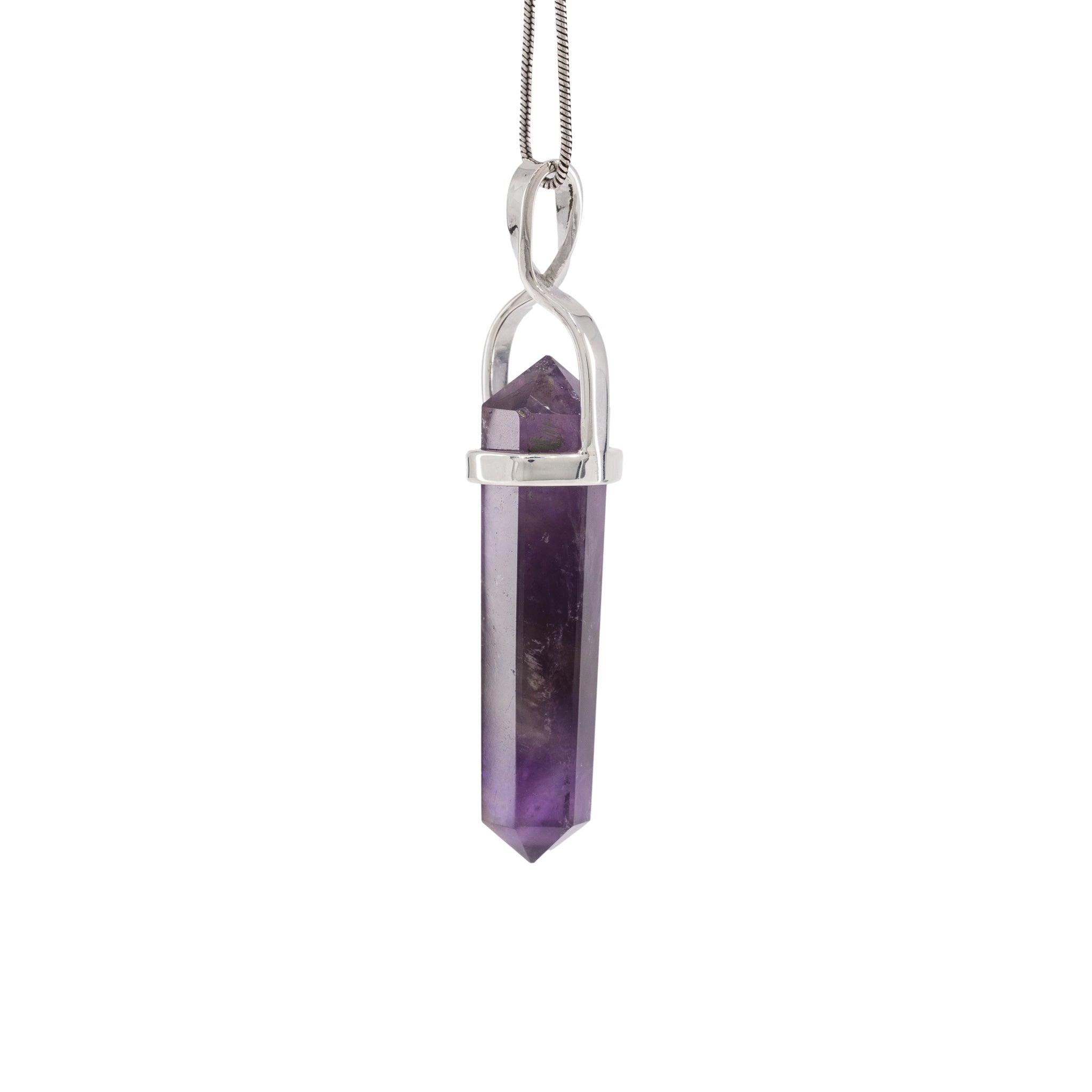 Amethyst 19.22 Carat Handcrafted Sterling Silver Polished Crystal Pendant