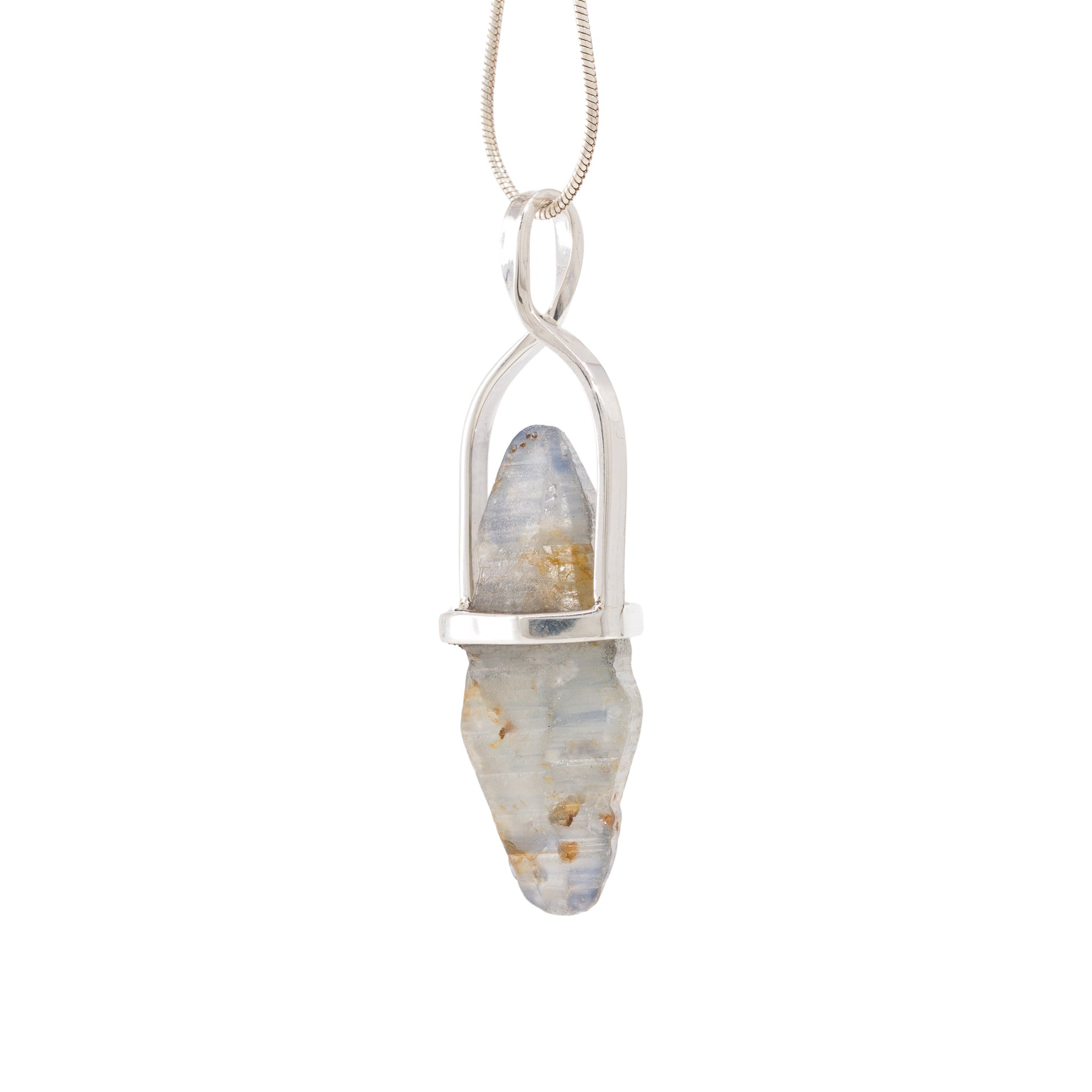 Blue Sapphire 20.37 Carat Sterling Silver Handcrafted Natural Crystal Pendant