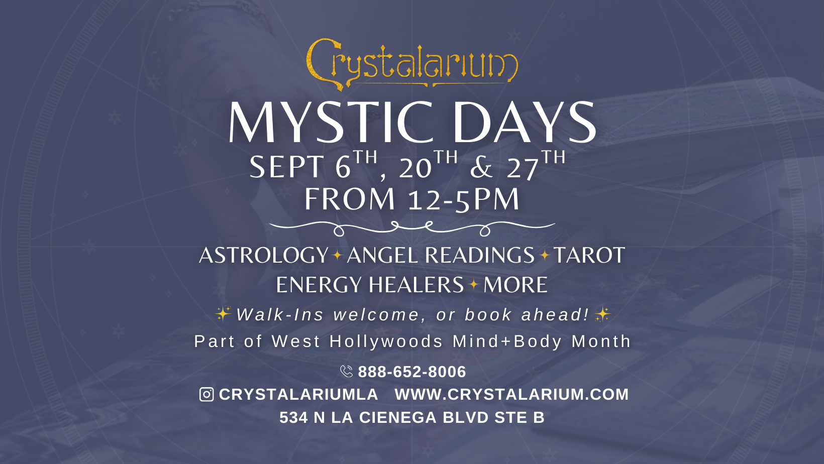 We’re opening our doors for afternoons of insight, connection, and a little magic. From 12–5pm on 9/6, 9/20, and 9/27, you’ll find astrologers, tarot readers, angel guides, and energy healers ready to share their gifts!