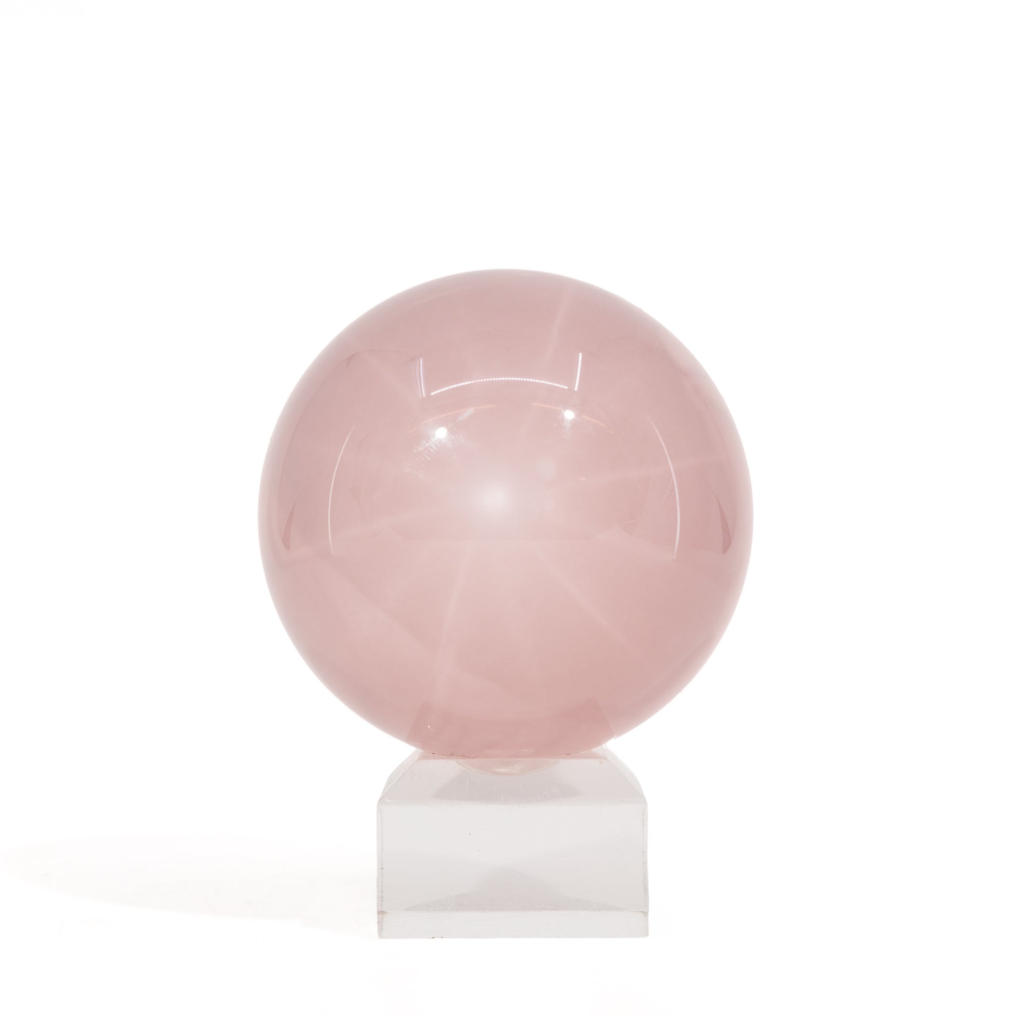 Natural polished Rose Quartz sphere with rare 12-ray asterism